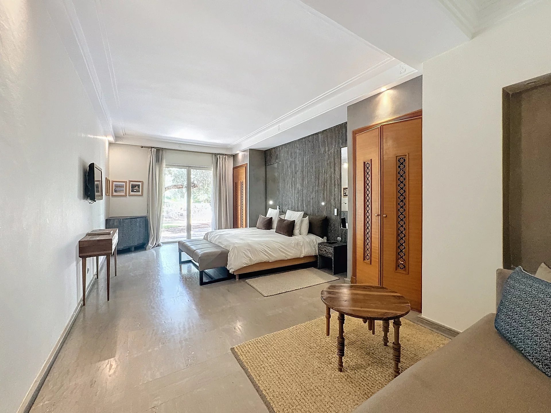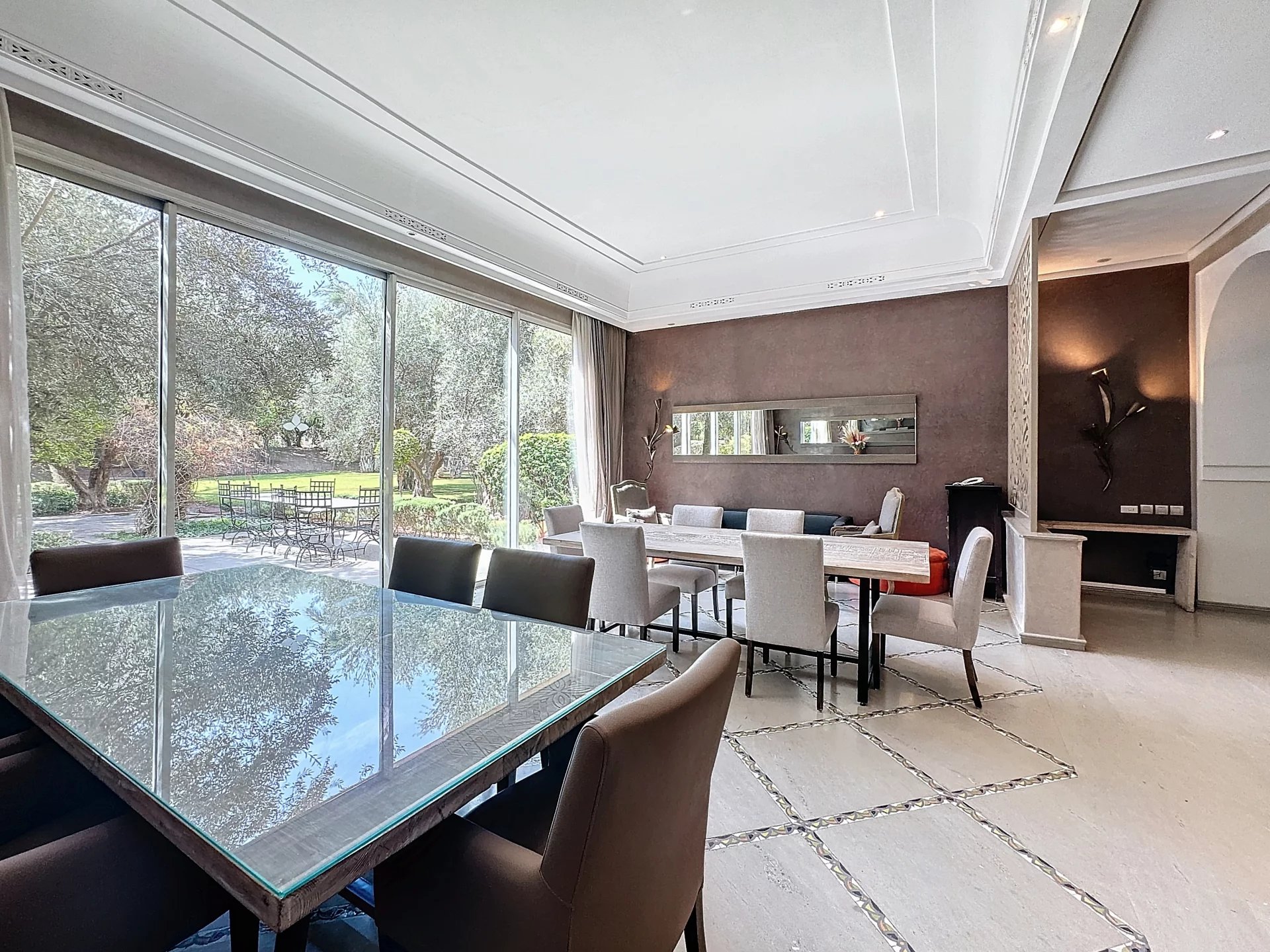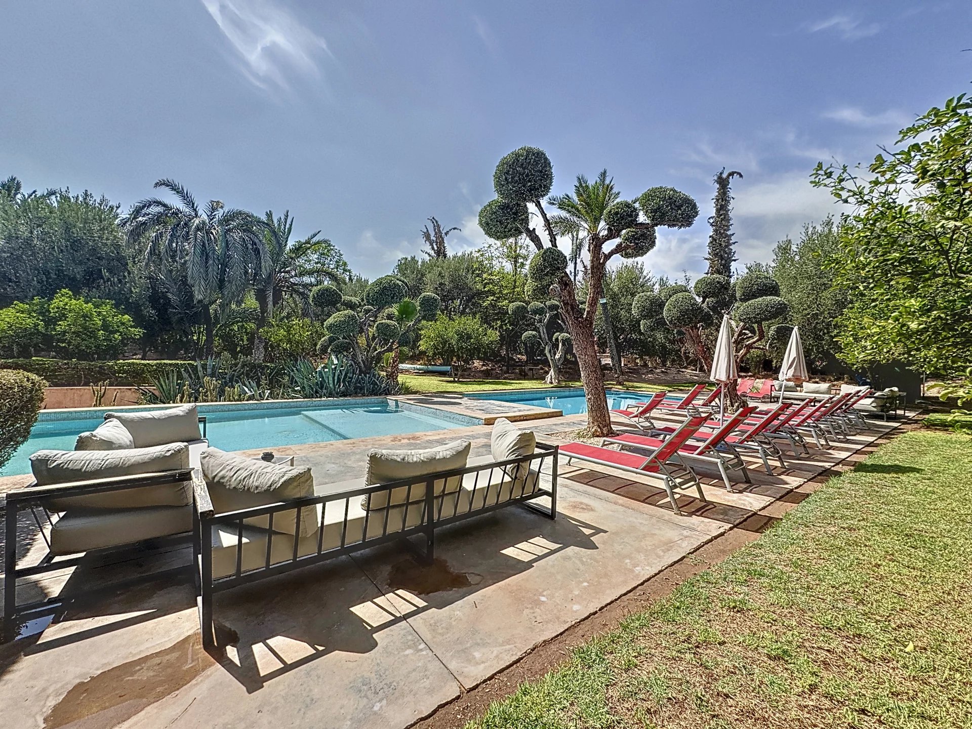 Nestled in the heart of the famous Palmeraie of Marrakech, this exceptional villa spans a 1-hectare plot, offering a luxurious and peaceful living environment. Villa Details: Land Area: 1 hectare of landscaped gardens, providing privacy and tranquility. Bedrooms: 11 spacious bedrooms, each designed for comfort and privacy, ideal for hosting family and friends. Living Spaces: Living Room: Large, bright living room, perfect for relaxing or entertaining guests, with breathtaking views of the garden. Spa: A dedicated wellness space, featuring a sauna, hammam, and massage rooms, offering unparalleled relaxation. Exteriors: Garden: A beautiful, lush garden adorned with exotic plants and fruit trees, creating an oasis of peace. Swimming Pool: A large pool surrounded by terraces, perfect for refreshing swims and enjoying the Moroccan sun. Carport: A secure parking area for multiple vehicles, ensuring comfort and practicality. Highlights: Prime Location: Close to the best amenities of the Palmeraie, renowned golf courses, and fine restaurants. Elegant Ambiance: Traditional Moroccan architecture blended with modern touches, creating a warm and welcoming environment. This villa is a rare opportunity to acquire a property of exceptional quality in one of the most sought-after areas of Marrakech. For more information or to schedule a visit, please do not hesitate to contact us!
