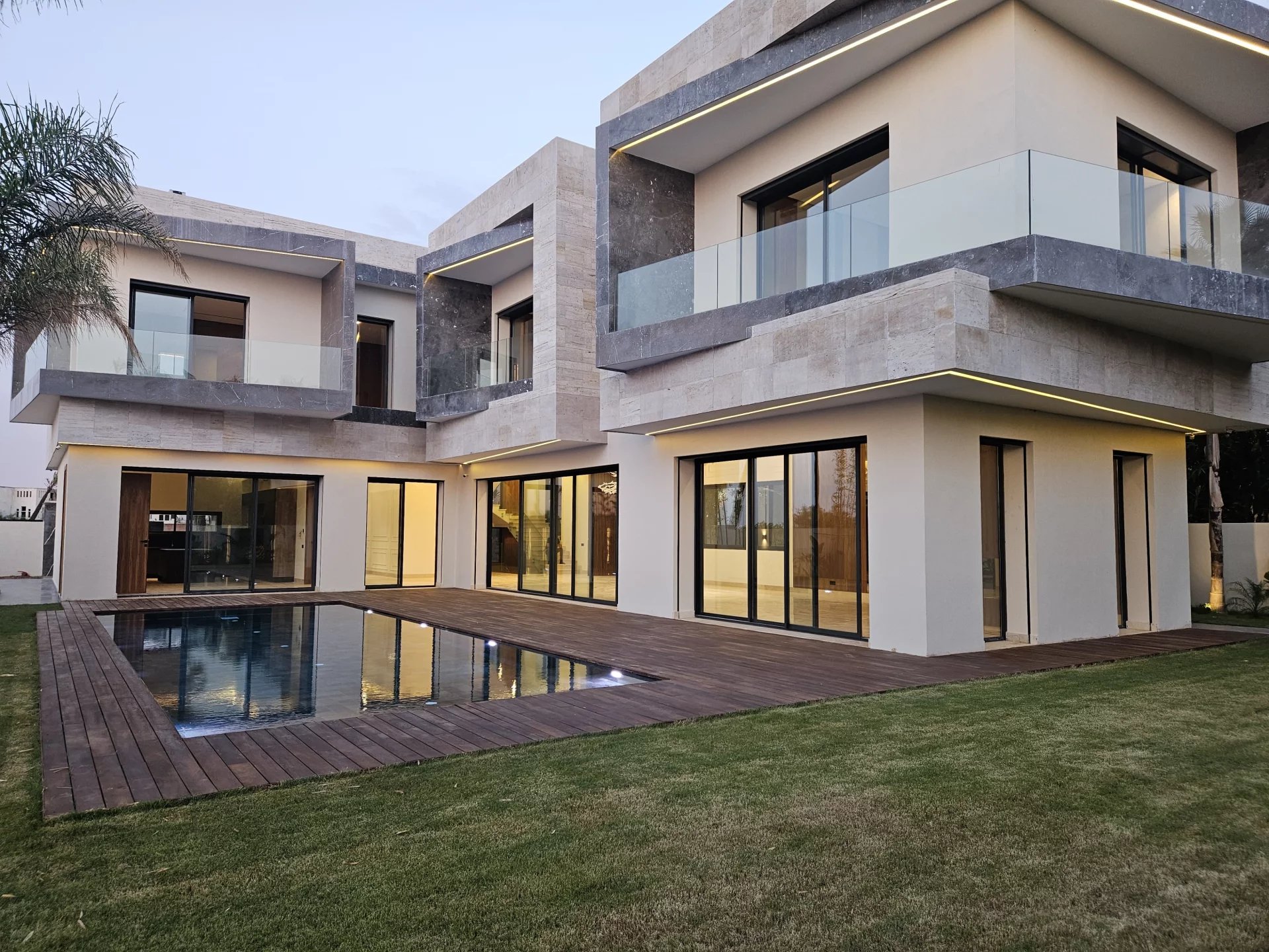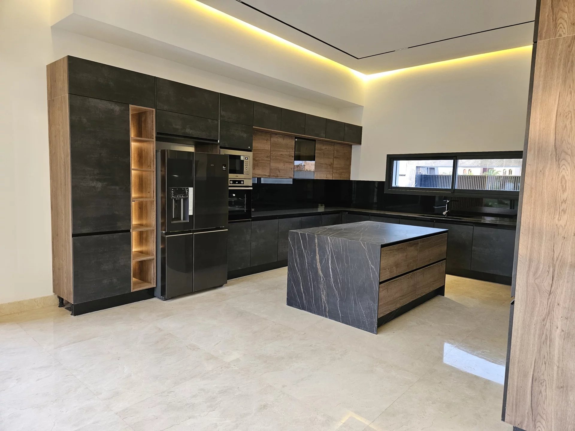 Barnes Marrakech presents for sale: Elegance and Modernity, An Exceptional Property Discover this magnificent home combining cutting-edge technology and refinement, nestled on a 1,011 m² plot. Generous Spaces and Architectural Harmony: Ground Floor: 298 m² of bright and functional spaces. First Floor: 308 m², featuring solid wood floors that bring warmth and authenticity. Basement: 310 m², offering remarkable development potential. High-End Features: Solar Energy: 22 kW solar panels for optimal energy efficiency. Hydraulic System: 1,000-liter electric water heater and 13 m³ water storage tank. Filtered and treated water with the latest-generation UV system. Modern Kitchen: Equipped with an American refrigerator, gas stove, oven, microwave, and dishwasher. Wellness and Leisure Spaces: Private Cinema Room: Immersive experience with a 180-inch 4K screen and a 7.1 audio system. Hammam: Heated with coils and steam generator for absolute relaxation. Technology and Comfort: Advanced Home Automation: Connected outlets for managing blinds and lighting remotely. This rare property on the market offers an exceptional living environment where every detail has been designed to combine comfort, aesthetics, and modernity. Contact us for a private viewing.