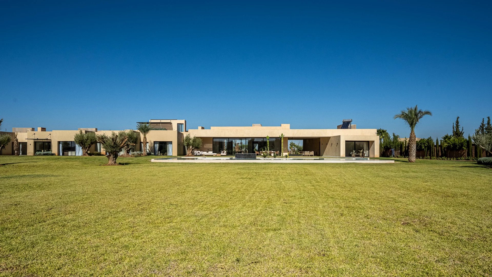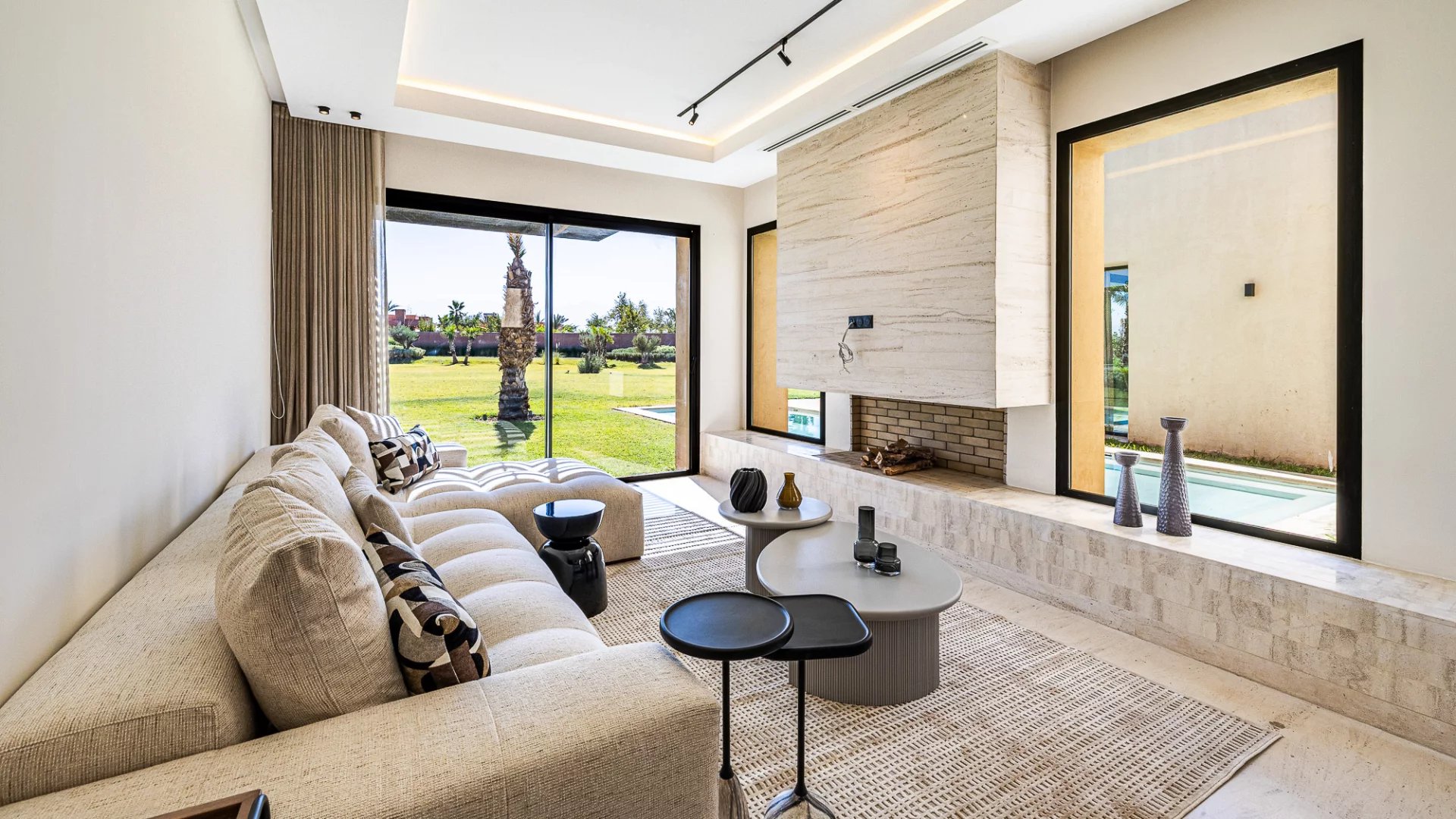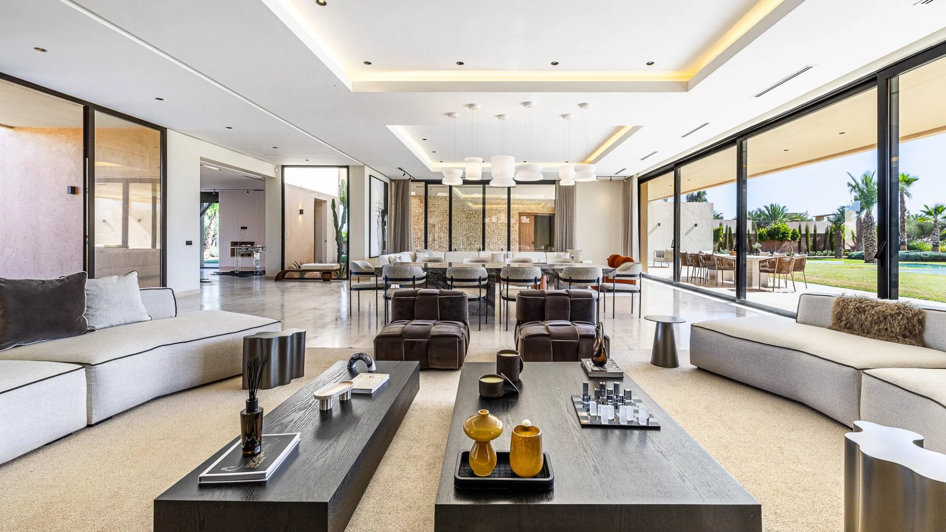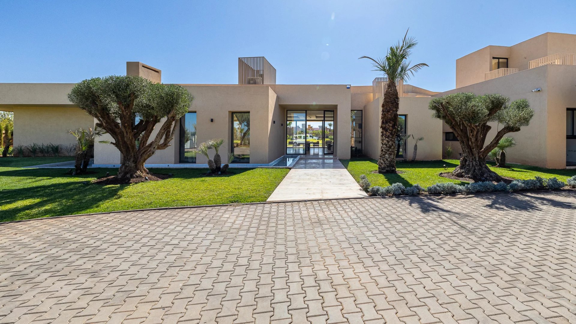 Just 20 minutes from Marrakech, on a hectare of land facing the majestic Atlas Mountains, this exceptional villa boasts contemporary architecture and refined volumes. With a built area of 1,500 m², it comprises an independent two-bedroom apartment with bathroom, dressing room and private terrace, as well as a sleek main house. Its vast living room, enhanced by a 15-metre bay window and elegant fireplace, opens onto the outdoors. The night space includes three bedrooms, all with en suite bathrooms, dressing rooms and terraces, as well as a sumptuous master suite with private lounge, dressing room, bathroom, patios and private pool. An exclusive wellness area completes this property: heated indoor pool, hammam, massage room, fitness area and outdoor terrace. Outside, a main pool with Jacuzzi and solarium offers an exceptional panorama of the Atlas Mountains. An idyllic setting, a perfect blend of luxury, modernity and nature