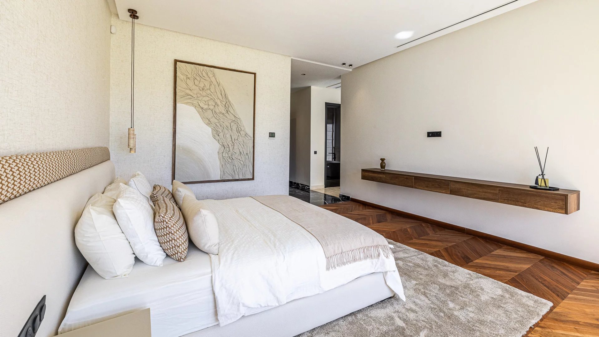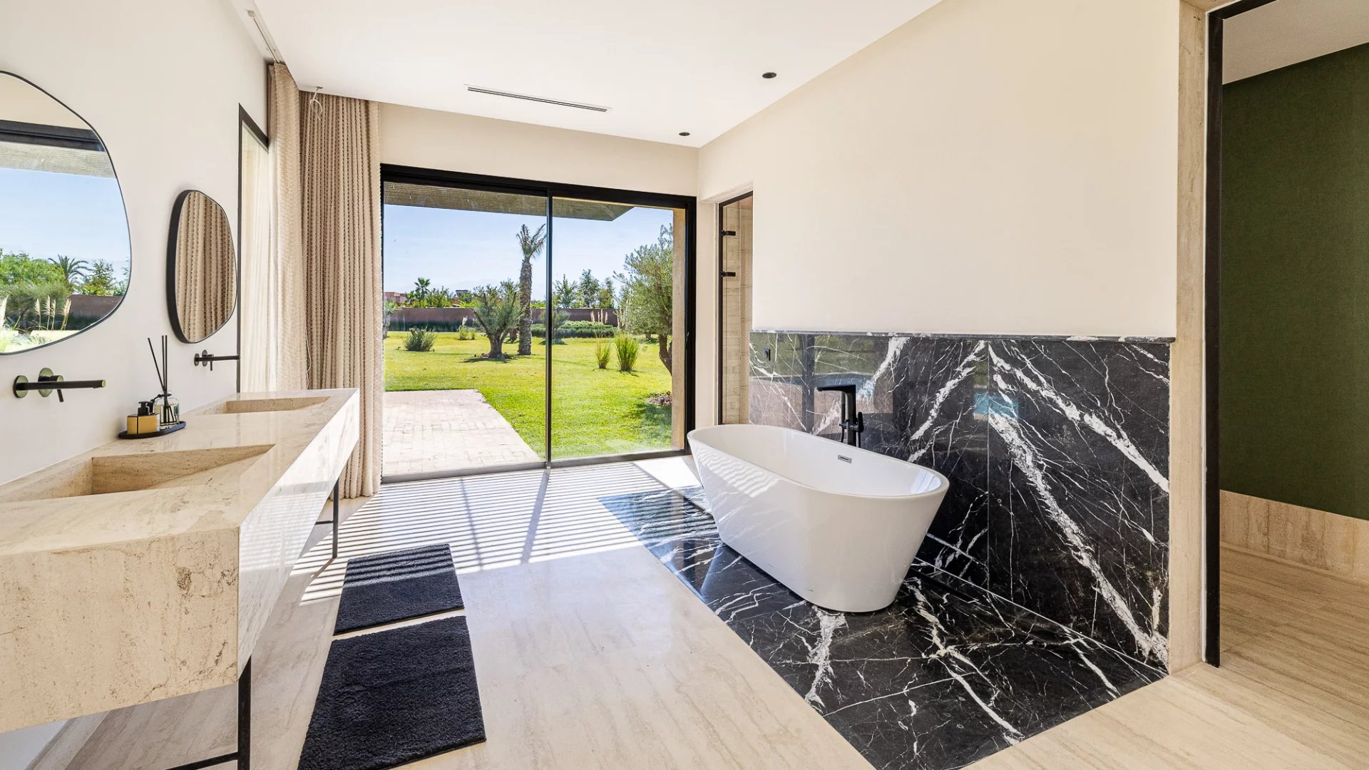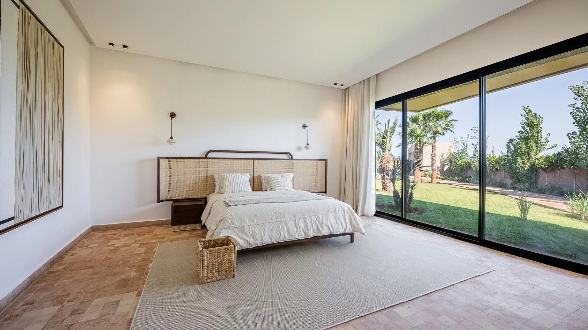 Just 20 minutes from Marrakech, on a hectare of land facing the majestic Atlas Mountains, this exceptional villa boasts contemporary architecture and refined volumes. With a built area of 1,500 m², it comprises an independent two-bedroom apartment with bathroom, dressing room and private terrace, as well as a sleek main house. Its vast living room, enhanced by a 15-metre bay window and elegant fireplace, opens onto the outdoors. The night space includes three bedrooms, all with en suite bathrooms, dressing rooms and terraces, as well as a sumptuous master suite with private lounge, dressing room, bathroom, patios and private pool. An exclusive wellness area completes this property: heated indoor pool, hammam, massage room, fitness area and outdoor terrace. Outside, a main pool with Jacuzzi and solarium offers an exceptional panorama of the Atlas Mountains. An idyllic setting, a perfect blend of luxury, modernity and nature