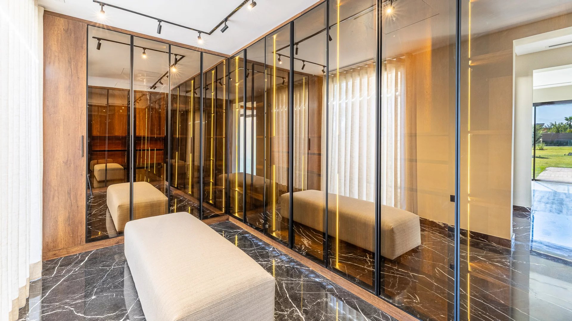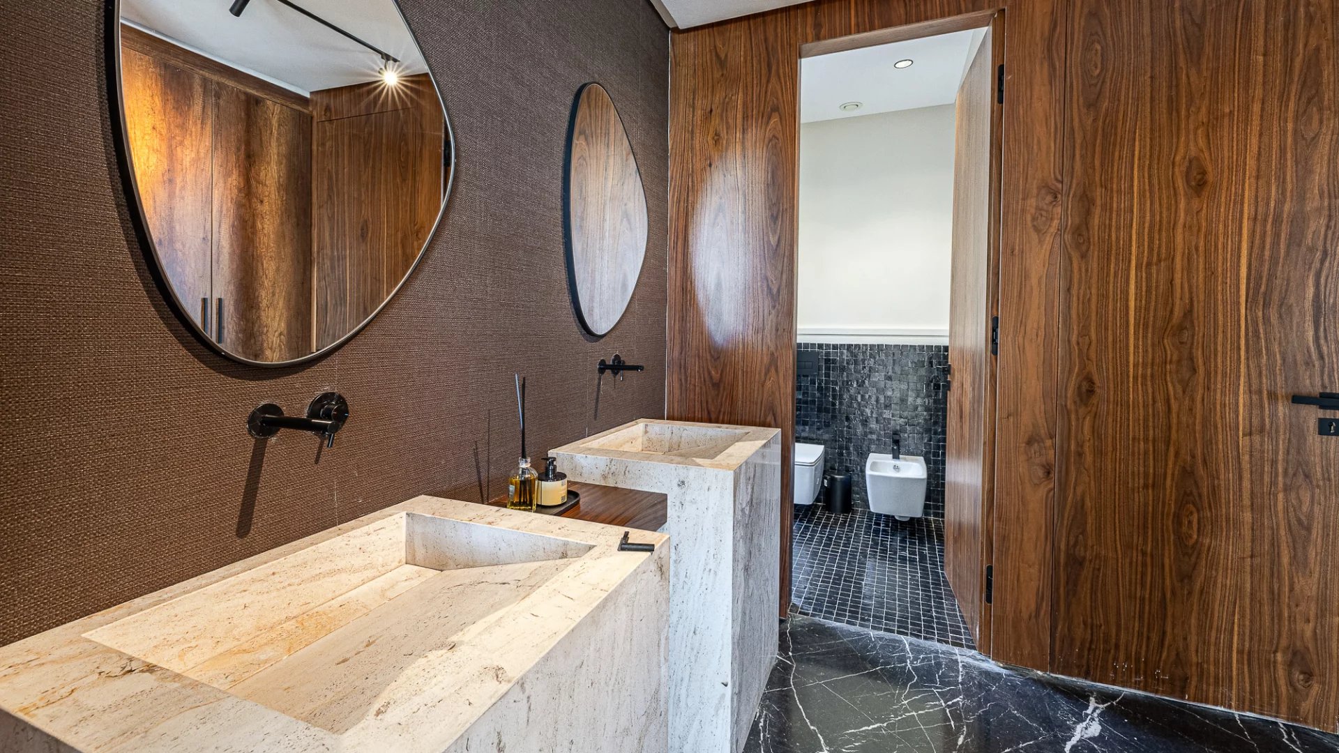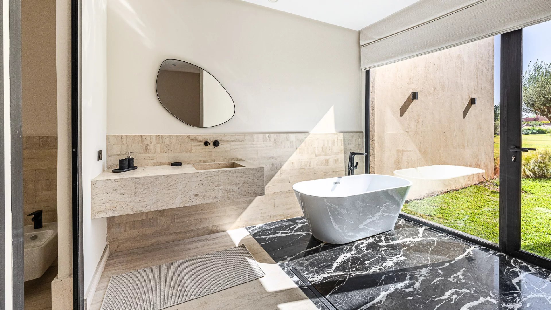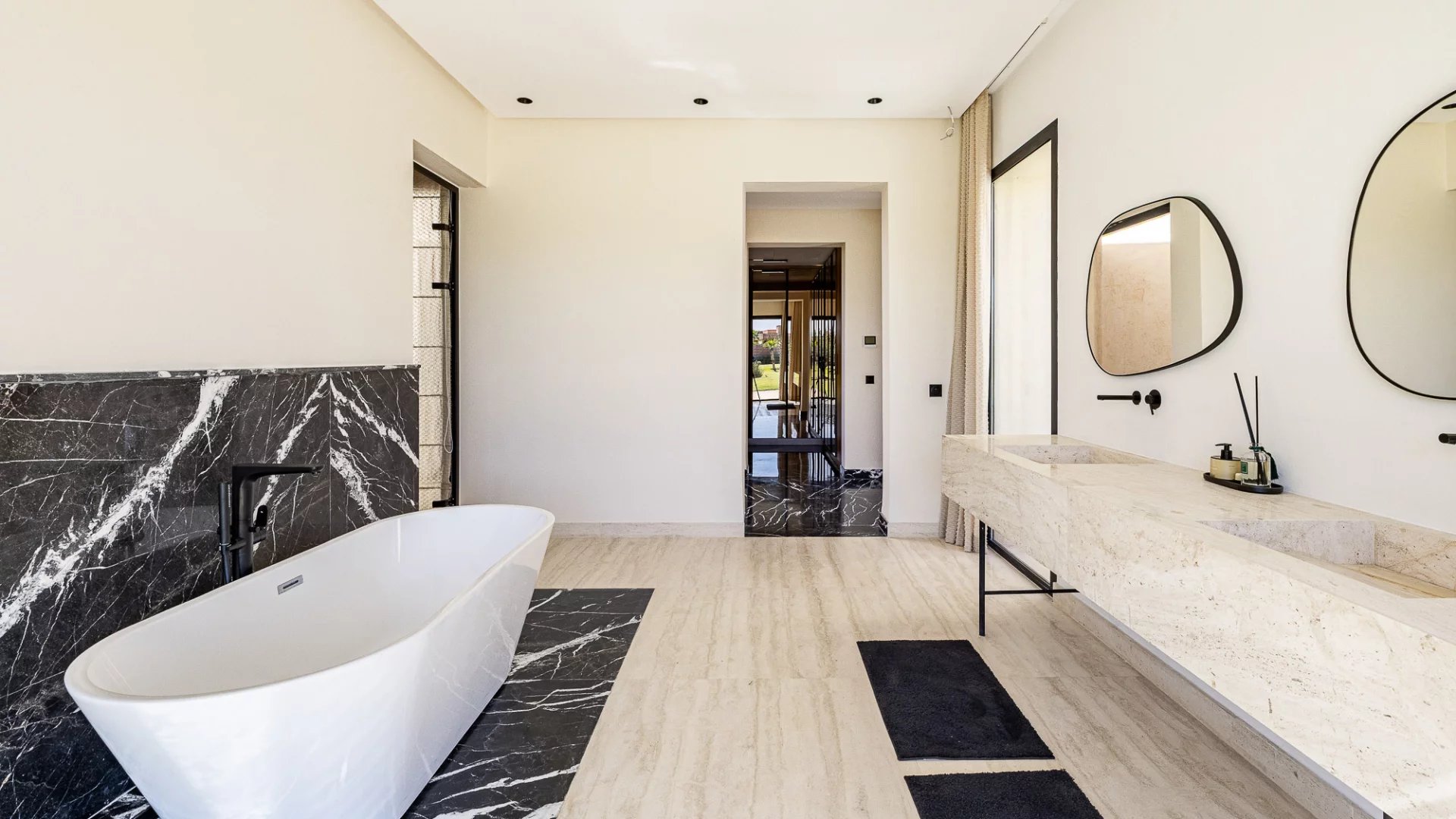 Just 20 minutes from Marrakech, on a hectare of land facing the majestic Atlas Mountains, this exceptional villa boasts contemporary architecture and refined volumes. With a built area of 1,500 m², it comprises an independent two-bedroom apartment with bathroom, dressing room and private terrace, as well as a sleek main house. Its vast living room, enhanced by a 15-metre bay window and elegant fireplace, opens onto the outdoors. The night space includes three bedrooms, all with en suite bathrooms, dressing rooms and terraces, as well as a sumptuous master suite with private lounge, dressing room, bathroom, patios and private pool. An exclusive wellness area completes this property: heated indoor pool, hammam, massage room, fitness area and outdoor terrace. Outside, a main pool with Jacuzzi and solarium offers an exceptional panorama of the Atlas Mountains. An idyllic setting, a perfect blend of luxury, modernity and nature