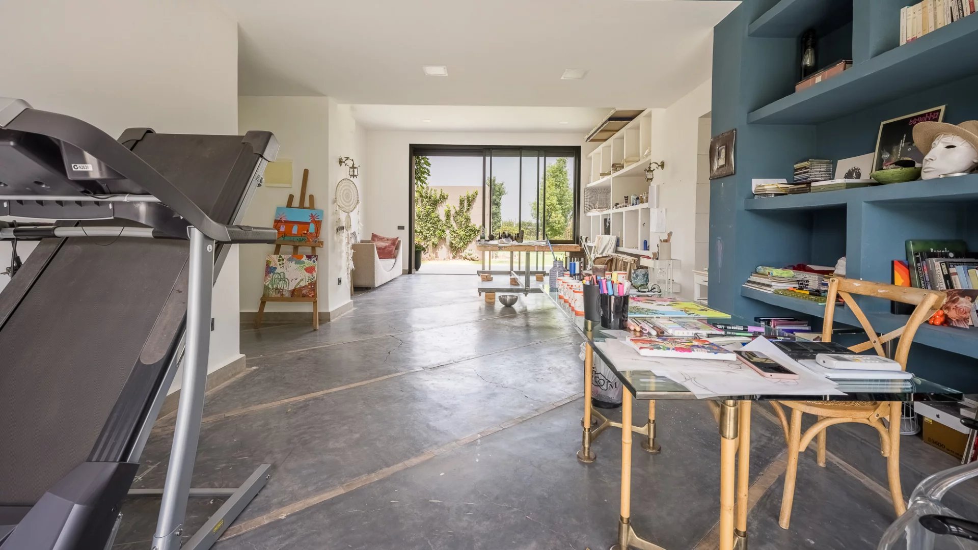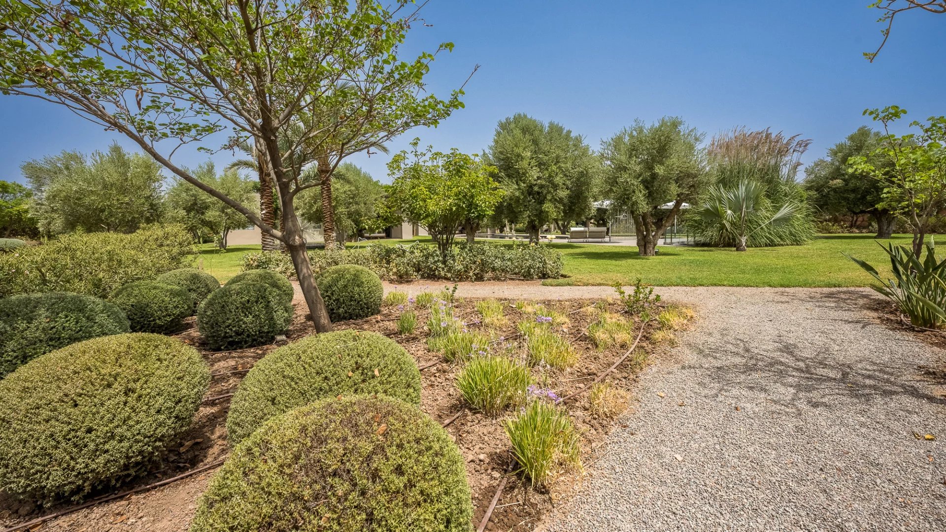 Discover this sumptuous villa in Marrakech, nestled on a hectare of lush grounds, offering 700 m² of living space, where every detail has been carefully thought out to create an exceptional living environment. As soon as you enter, you'll be greeted by a majestic hall with generous volumes and high-quality finishes, which sets the tone for this exceptional property. The main living room, bathed in light thanks to its large picture windows, invites you to relax and socialize. An intimate, comfortable TV lounge area lets you enjoy moments of relaxation in complete tranquillity. The dining room, open to the outside, offers direct access to a fully equipped terrace, where an elegant Andalusian fountain adds a touch of refinement and serenity. The modern, fully-equipped kitchen is a gourmet's paradise, with top-of-the-range appliances and ergonomic workspaces. The villa's cleverly laid-out basement includes spacious storage areas, a technical room to ensure the smooth running of all installations, and a light-filled workshop that can be transformed into a studio to suit your needs or creative desires. This villa is more than just a residence, it's a true haven of peace, where every space has been designed to offer optimal living comfort, in a setting that combines modernity and Moroccan tradition.The garden of this sumptuous villa is a veritable jewel case of greenery, carefully landscaped with a wide variety of plantings that give the property a unique character and an enchanting atmosphere. Every corner of the garden invites you to relax, whether for a stroll among the local species or to enjoy moments of calm in the shade of the majestic trees. This plant diversity, combined with the harmonious layout of the garden, makes this villa an exceptional place, where nature blends perfectly with the elegance of the architecture.