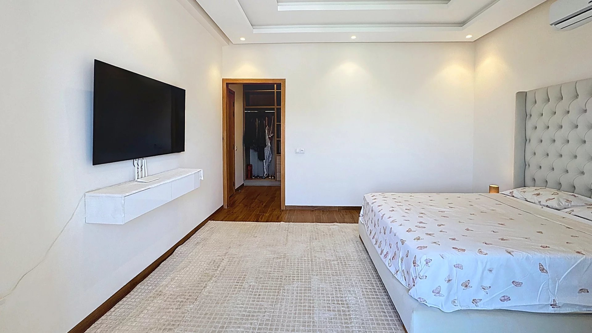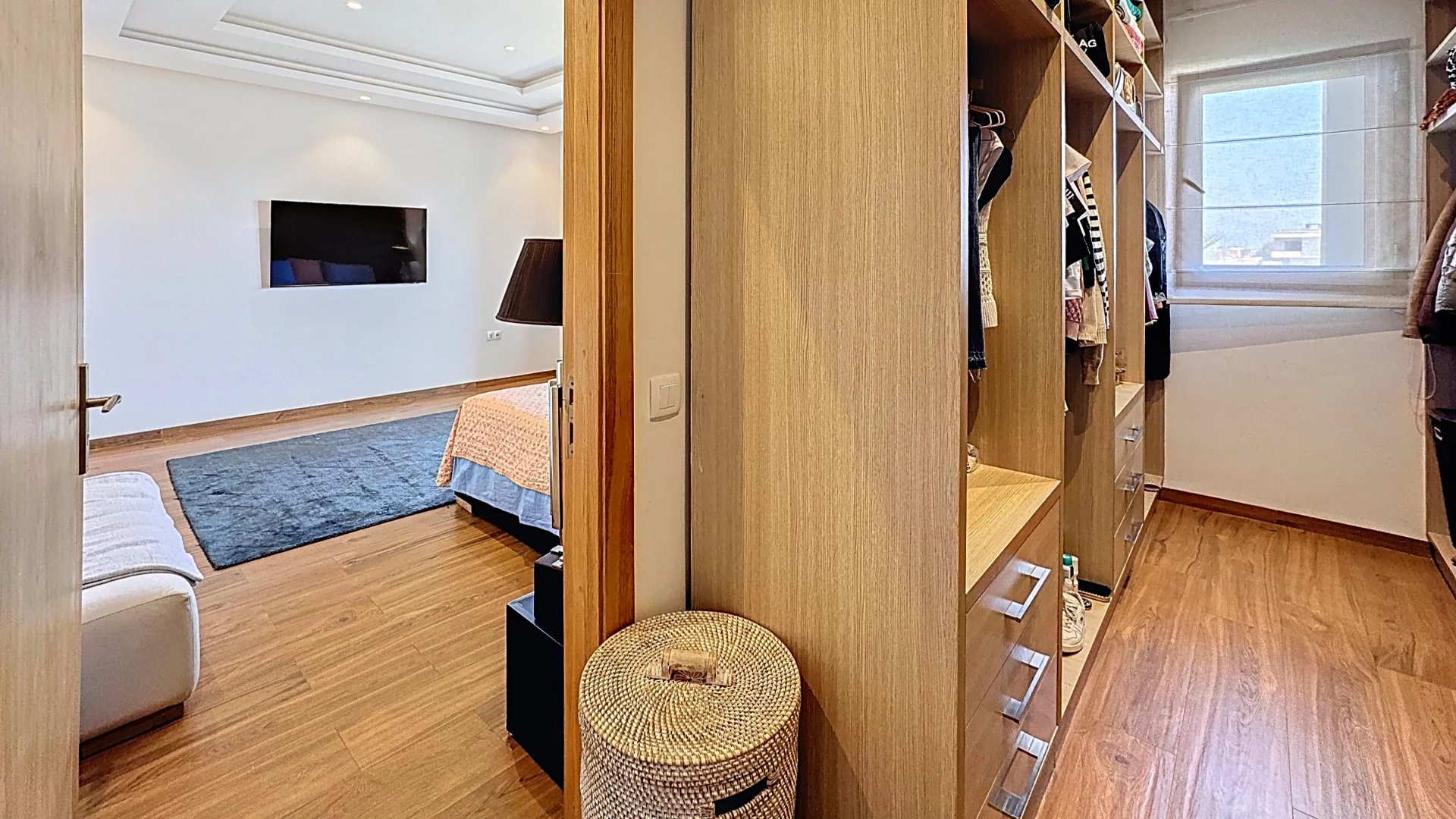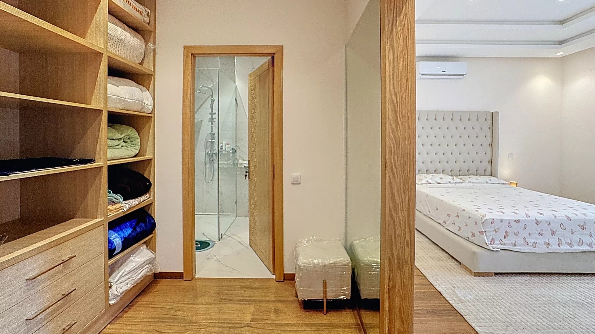 Just a few steps from Marrakech city center in the Agdal tourist area, this semi-detached house with 500m2 of living space is ideal for a rental investment with its 5 bedrooms, or for a family set-up. The villa is built on 3 levels, with a double living and dining area on the ground floor, a guest toilet and a fully-equipped open-plan kitchen. Upstairs are 3 large bedrooms with en-suite bathrooms and dressing rooms, including a master bed room with a very large dressing room and office area. In the basement, to keep cool in the summer months, a second living space with dining room, living room, kitchen, 2 guest bedrooms, a storage area and a hammam. The house has its own swimming pool and covered parking space.