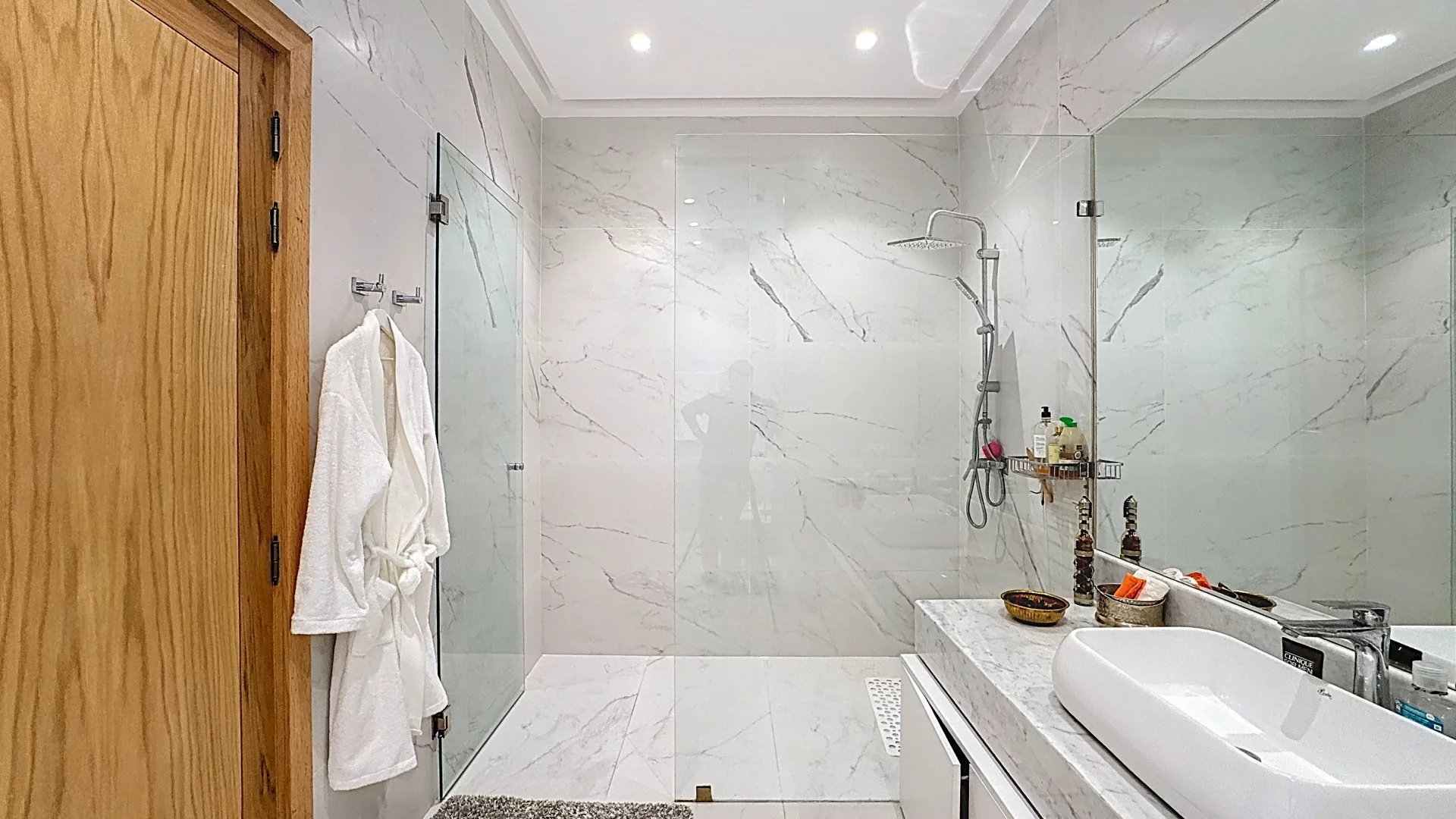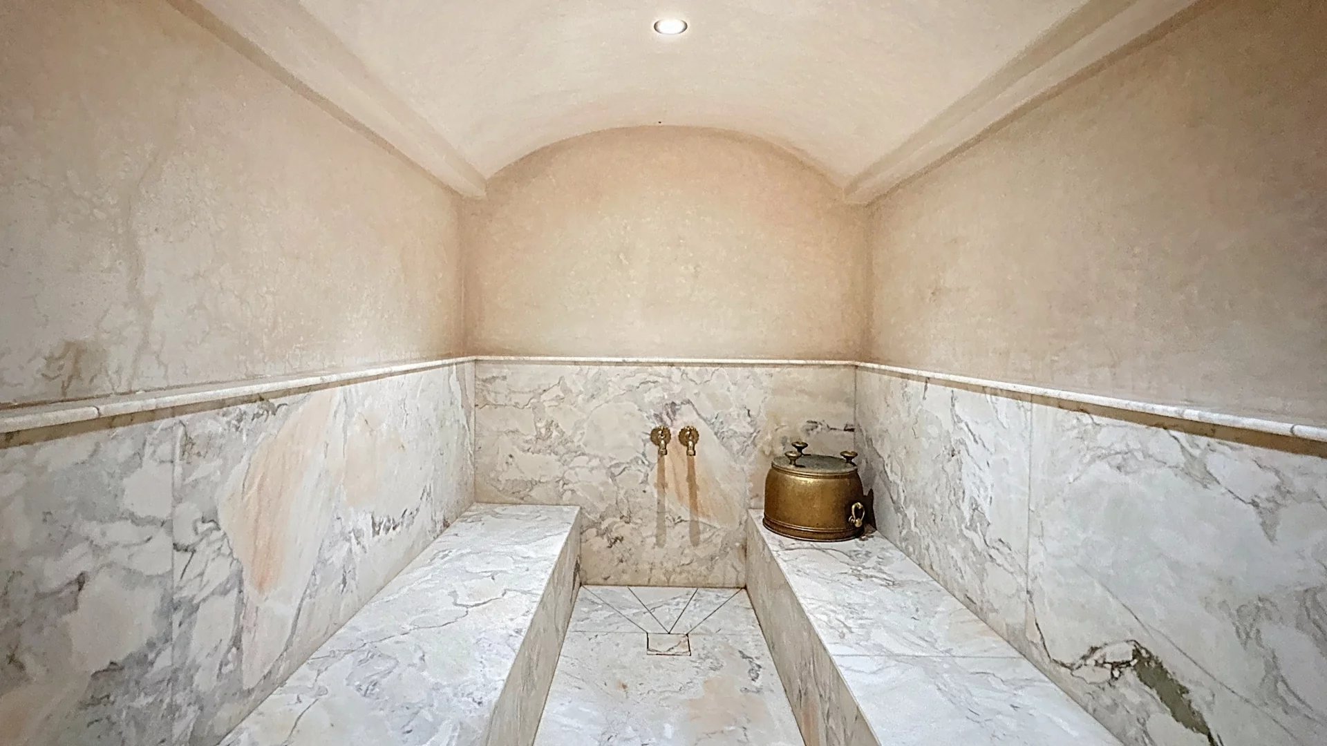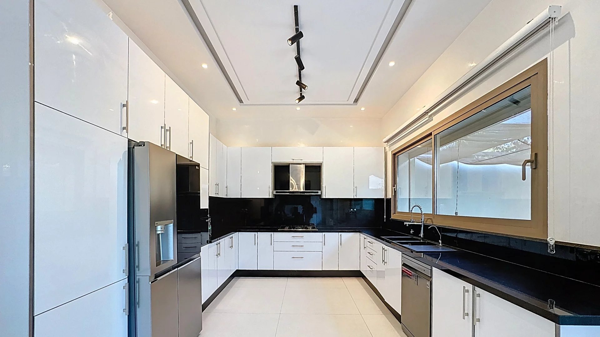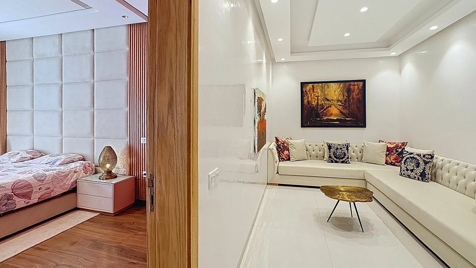 Just a few steps from Marrakech city center in the Agdal tourist area, this semi-detached house with 500m2 of living space is ideal for a rental investment with its 5 bedrooms, or for a family set-up. The villa is built on 3 levels, with a double living and dining area on the ground floor, a guest toilet and a fully-equipped open-plan kitchen. Upstairs are 3 large bedrooms with en-suite bathrooms and dressing rooms, including a master bed room with a very large dressing room and office area. In the basement, to keep cool in the summer months, a second living space with dining room, living room, kitchen, 2 guest bedrooms, a storage area and a hammam. The house has its own swimming pool and covered parking space.