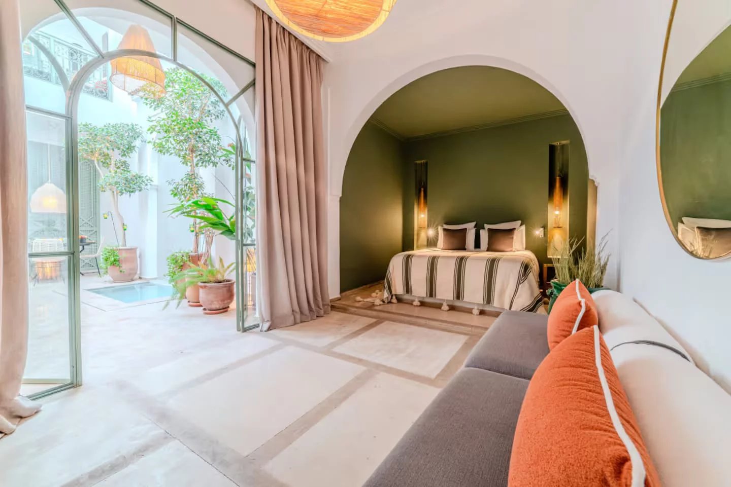 This high-end, titled riad immediately appeals with its elegant atmosphere and harmonious volumes. The owners have designed and created a refined decor, with a true sense of detail and high-quality finishes, creating a space that is warm, chic, and timeless. The ground floor is organized around a convivial living space including a kitchen, a lounge with a fireplace, and an elegant fountain that brings freshness and serenity to the whole. A first suite completes this level. On the first floor, there are two bedrooms with private bathrooms as well as a pleasant relaxation area, offering calm and comfort. The second level offers an additional living space designed for entertaining and fully enjoying the Marrakech climate: kitchen/bar, dining area, large pool, and a bed area for relaxing moments in an exclusive atmosphere. This riad is an ideal charming residence in Marrakech while offering excellent rental income potential thanks to its sought-after location, configuration, and standing. A rare property where elegance, comfort, and art of living meet. Ideally located in a quiet derb in the sought-after Sidi Mimoune neighborhood with easy and convenient access. Parking just 2 minutes walk away, a rare and highly sought-after asset.