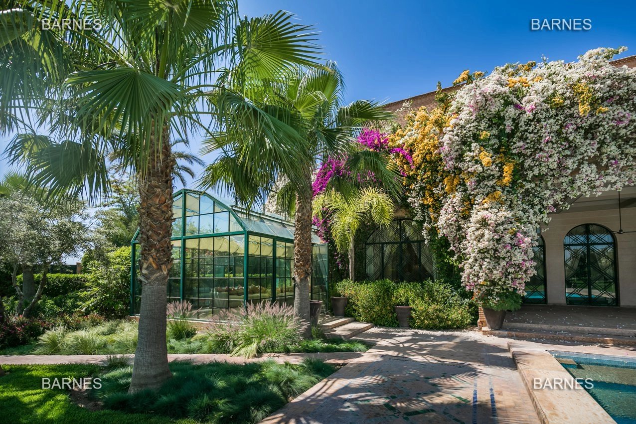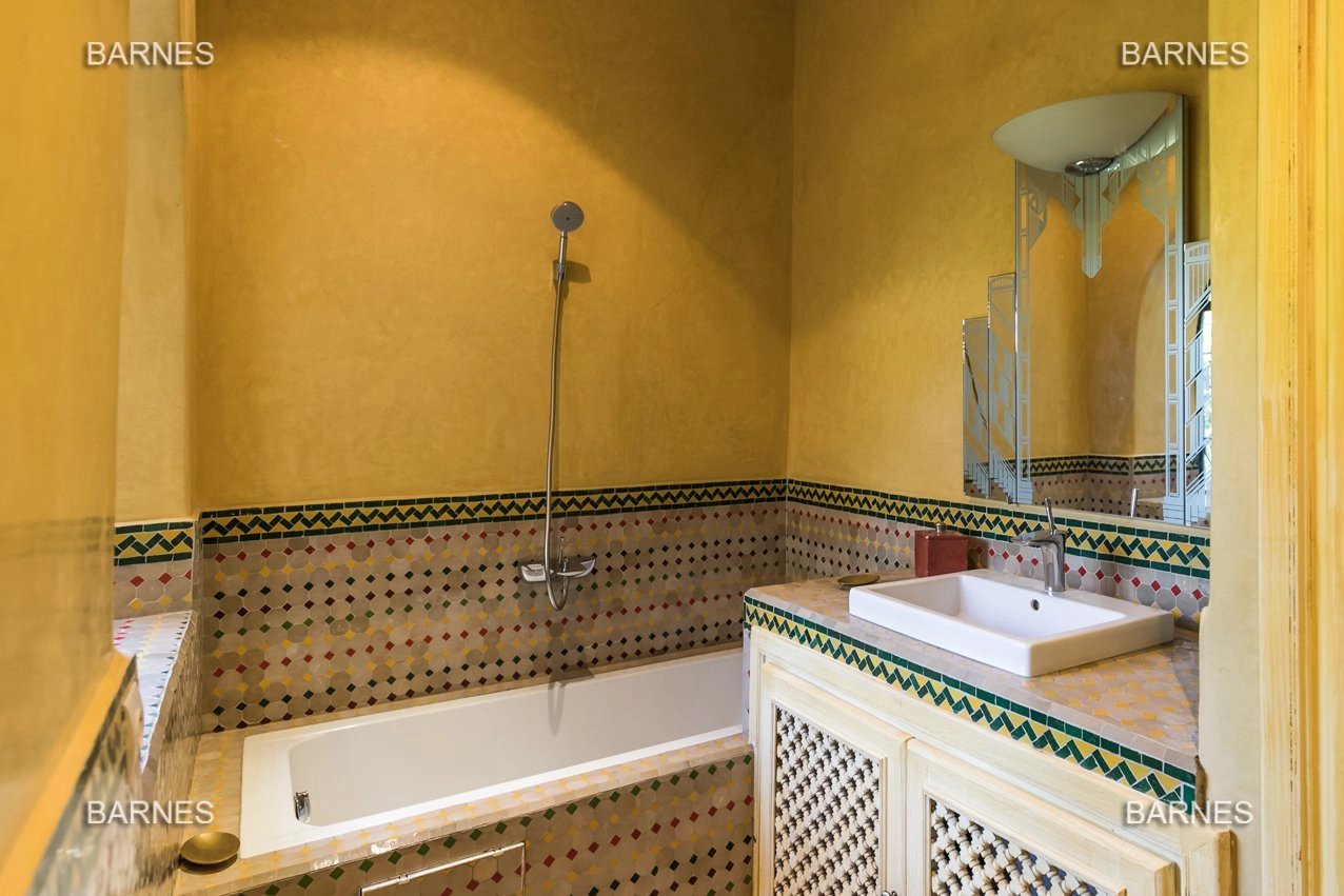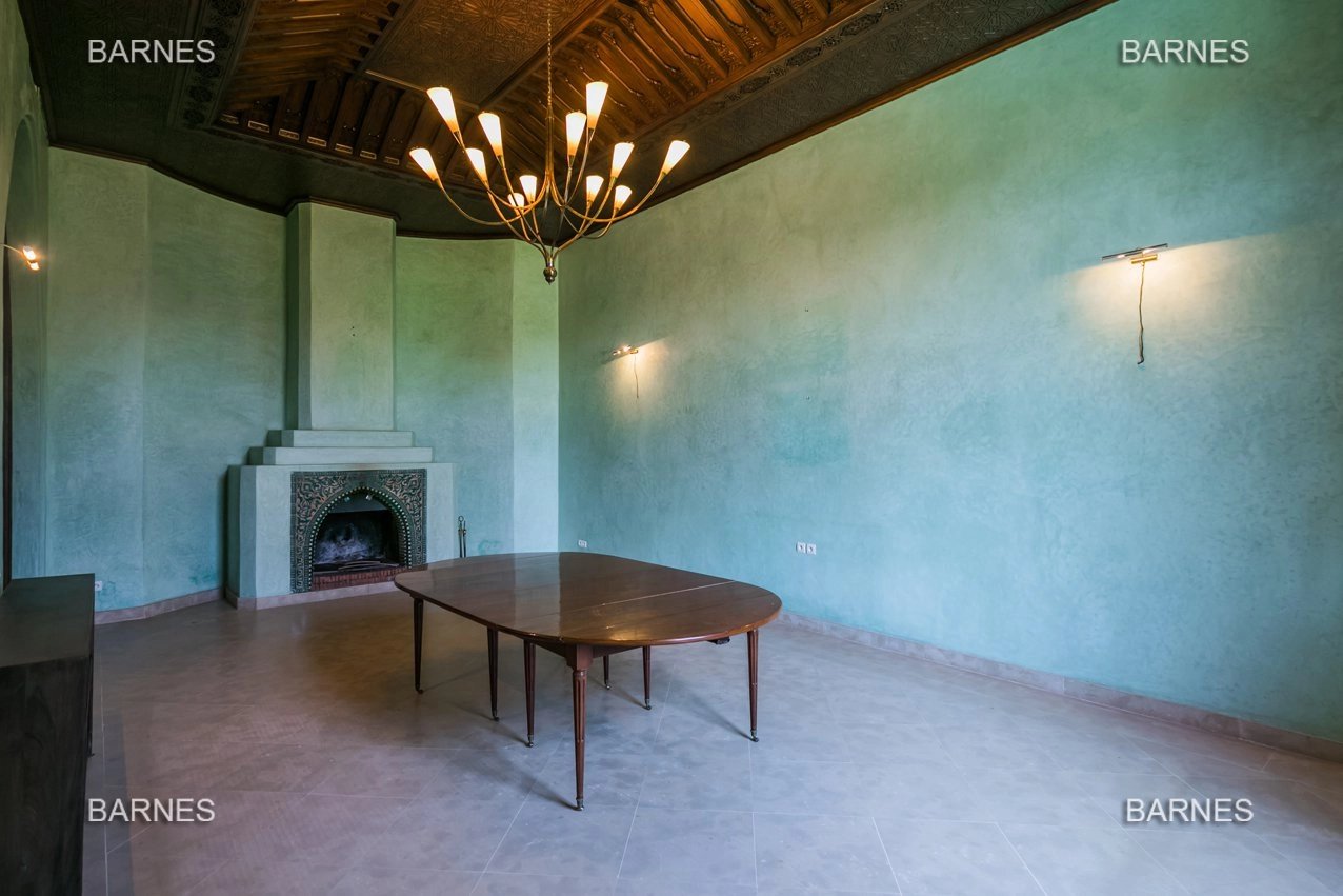 Located on a beautifully landscaped park, this lovely villa features a blend of Moroccan and Art Deco styles. The entrance boasts a beautiful vaulted brickwork that leads to an intimate living room, large veranda, dining room, and library. The property includes 6 bedrooms with bathrooms and terraces that surround patios and fountains. Additionally, there are two other beautiful bedrooms and a master suite with a terrace and fireplace. On the first floor, there is a hammam and massage room.