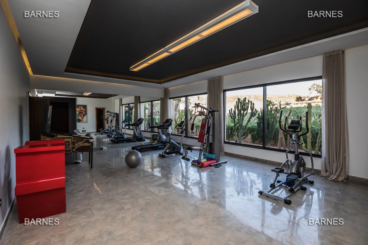 Located 30 minutes from the Jemaa El Fna square and Marrakech Menara airport, the villa is 15 minutes from four international golf courses. Situated on a 10-hectare estate, the property is fenced and planted with palm trees, orange trees, olive trees, and many other species of Marrakech. Its garden extends over 3.5 hectares, including 1 hectare dedicated to organic farming and animals. The living area of this residence is 1500 m², including: 4 suites with bathrooms, one of which has a private pool, a Moroccan lounge, a French lounge, a designer dining room, and a fully equipped kitchen. There are also 2 staff bedrooms with a lounge, 1 laundry room, 1 caretaker's house, and a 200 m² underground garage with a workshop. There are 3 pools, one of which is 50 meters long.