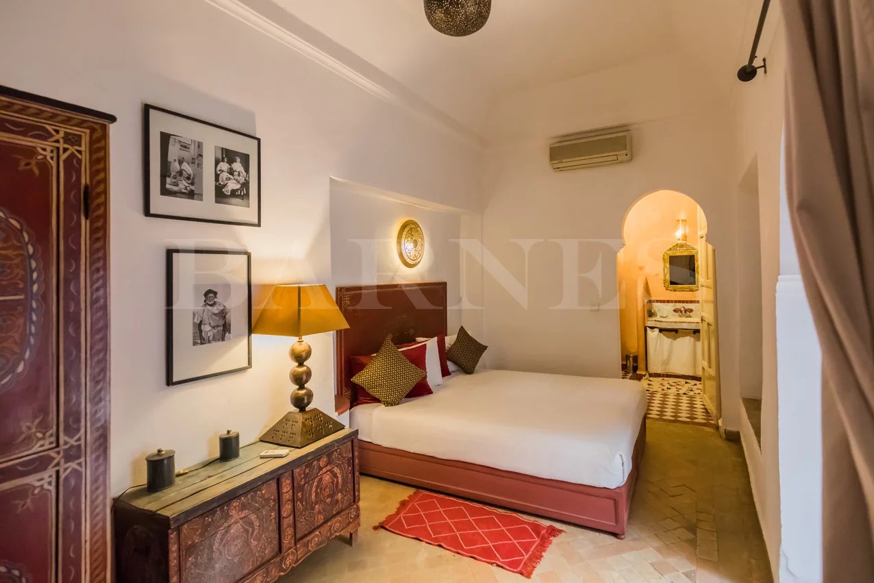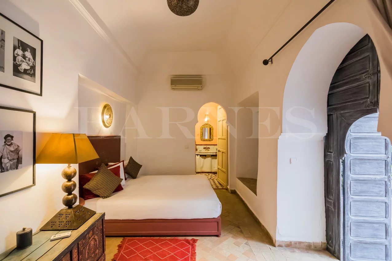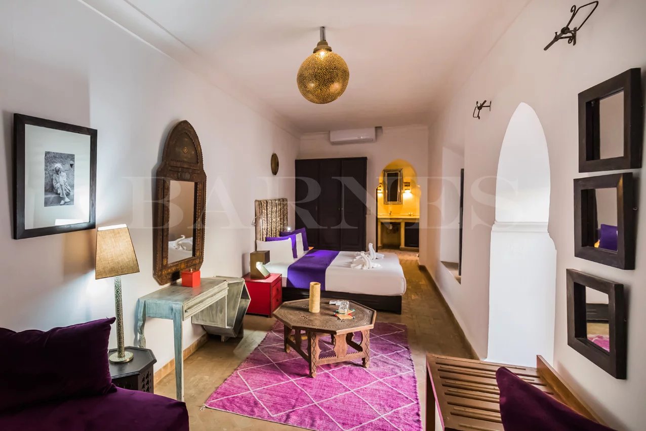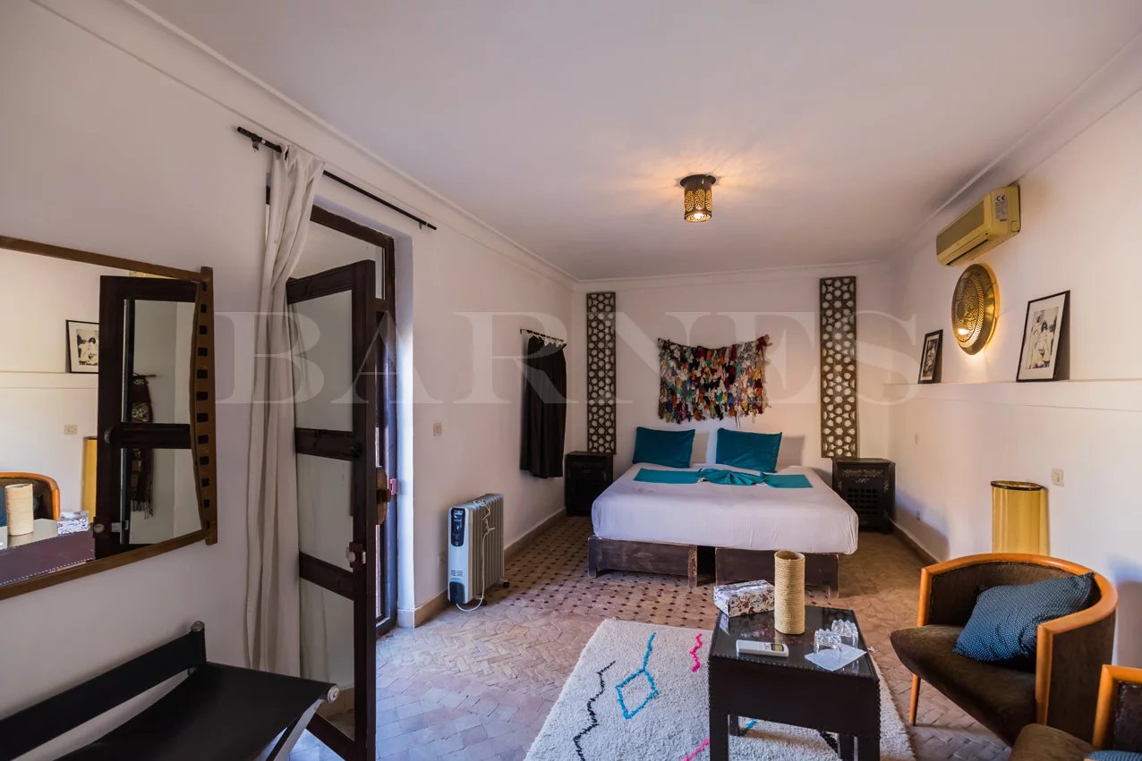 Beautiful guesthouse located in Sidi Slimane in the medina, close to all amenities, with a surface area of 275 m2. On the ground floor: 2 suites with a fireplace 2 bedrooms with two bathrooms Kitchen Technical room (pool) WC A swimming pool First floor: Two suites with a fireplace One suite with a fireplace A living room Technical room Terrace: Two bedrooms/bathrooms A large furnished terrace.