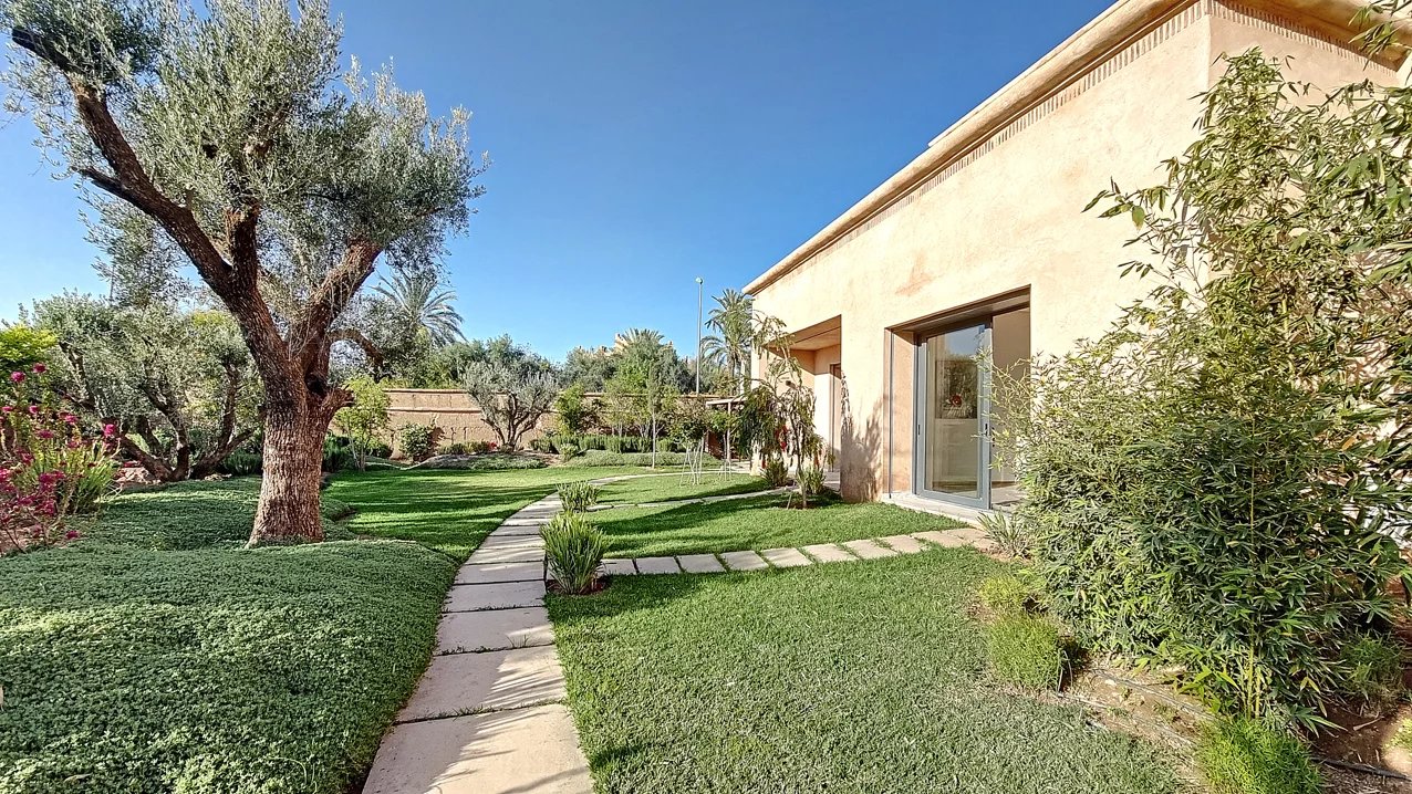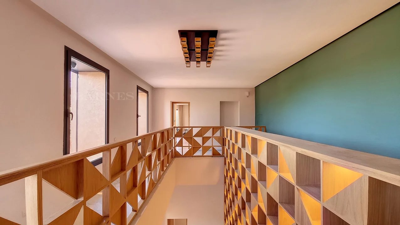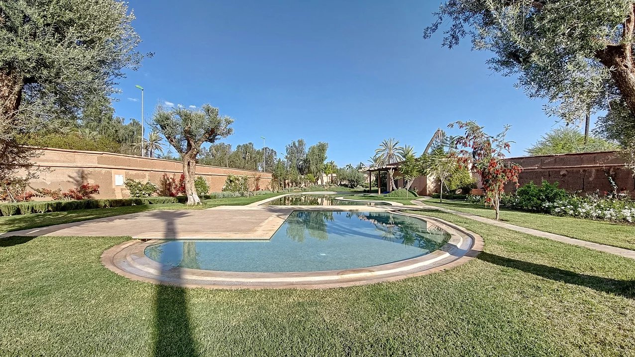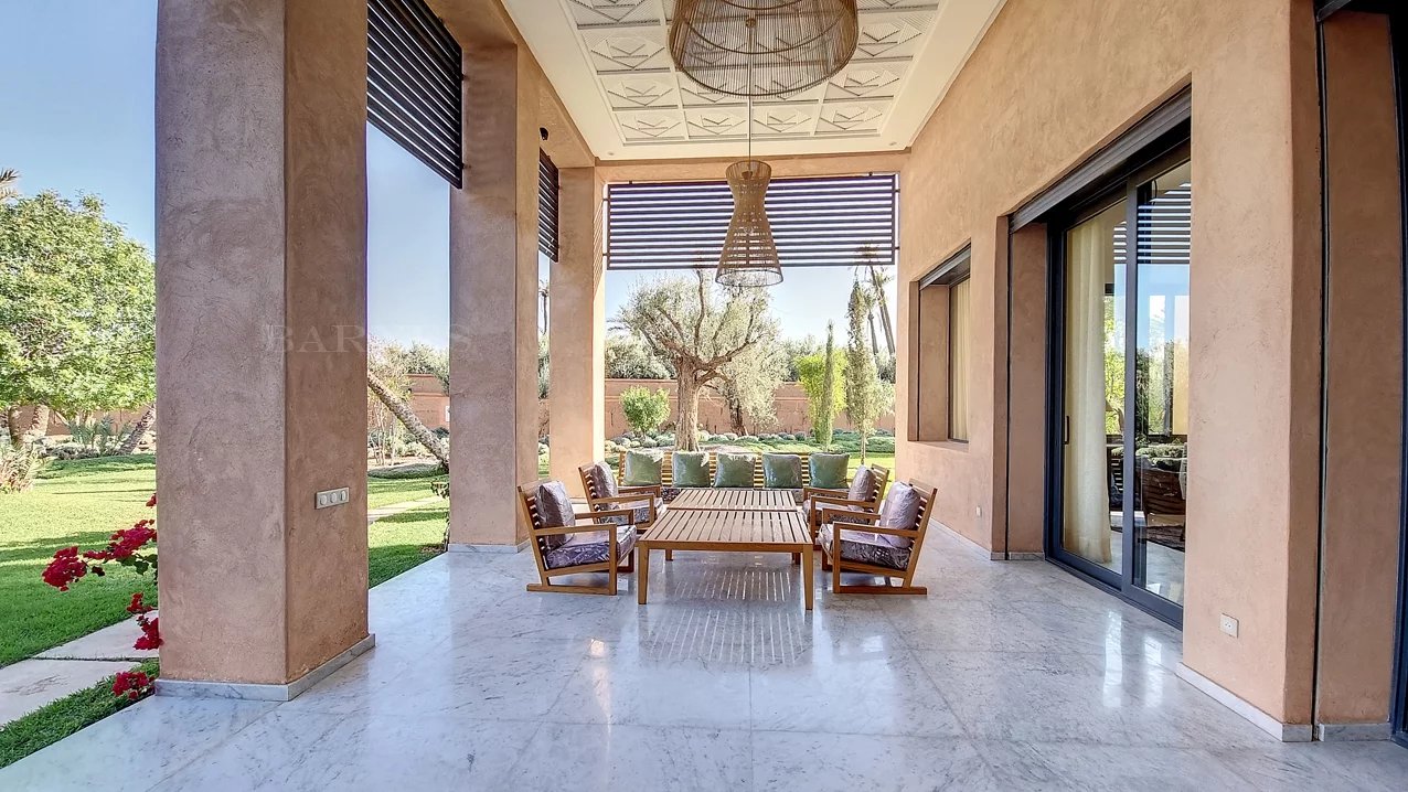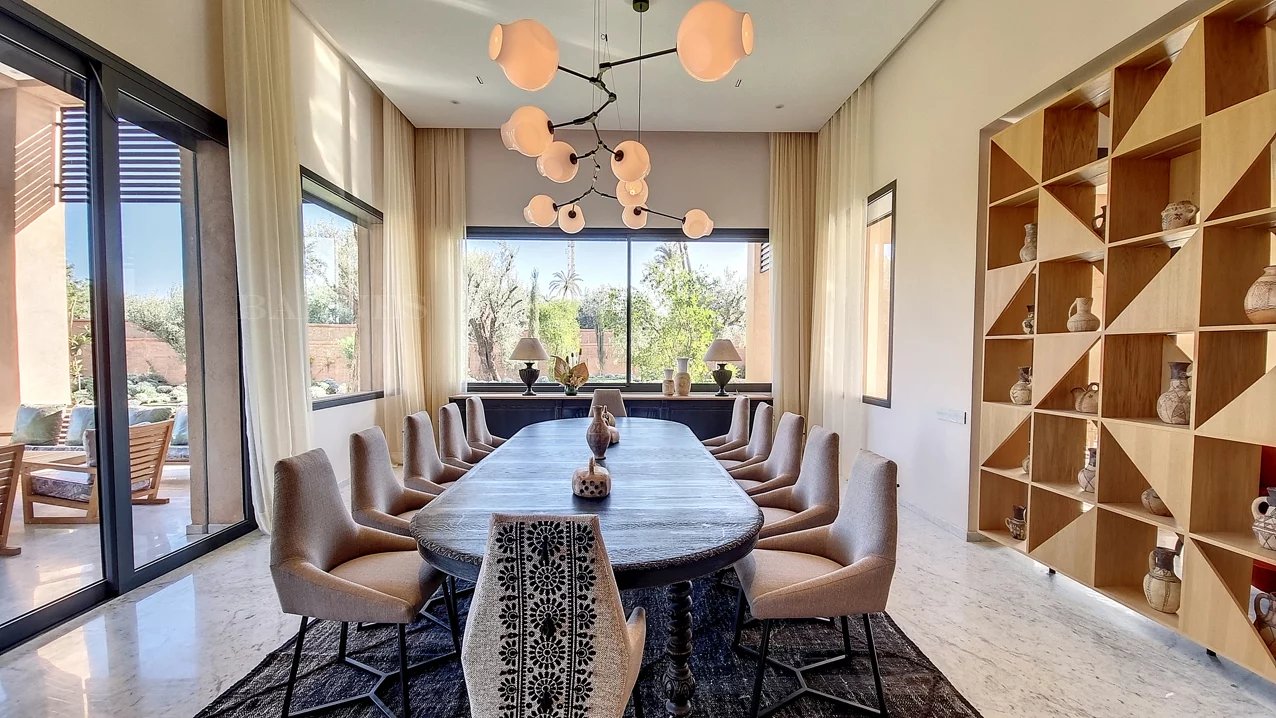 Discover an exquisite villa located in the heart of Marrakech, offering a seamless blend of contemporary elegance and traditional charm. Spanning an impressive 950 square meters, this stunning property is designed to provide a luxurious living experience with its spacious layout and stylish details. The villa boasts five beautifully appointed bedrooms, each providing a tranquil retreat with en-suite facilities, ensuring comfort and privacy. This charming villa features expansive living areas with large windows that flood the space with natural light, creating a warm and inviting atmosphere. The open-plan dining and living spaces are perfect for entertaining, while the modern kitchen is equipped with high-end appliances, catering to all your culinary needs. The outdoor spaces are equally impressive, with a meticulously landscaped garden and a terrace that offers stunning views of the surrounding area. The property also includes a luxurious swimming pool, ideal for relaxing and enjoying the sunny Marrakech weather. Relax by the poolside or explore the lush gardens, creating unforgettable memories in this remarkable retreat. With its perfect blend of comfort, style, and functionality, this villa represents an exceptional opportunity to own a piece of paradise in one of Morocco's most desirable locations.
