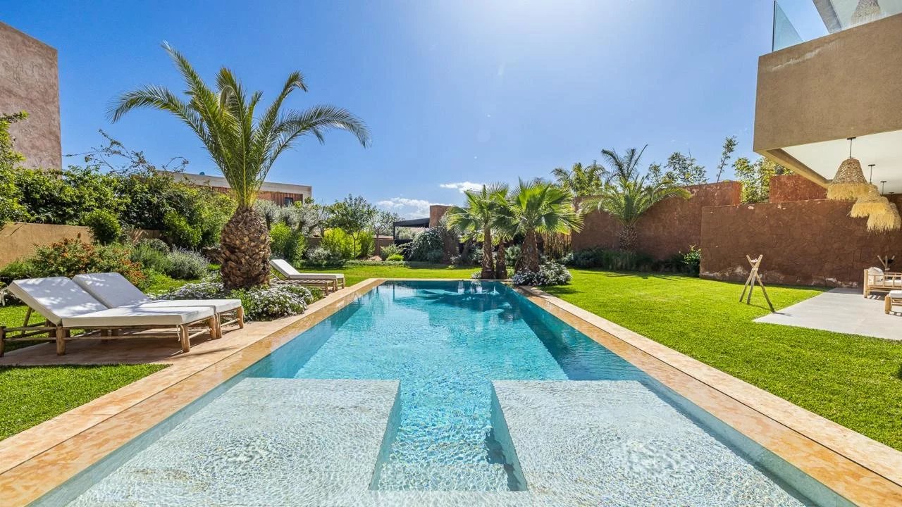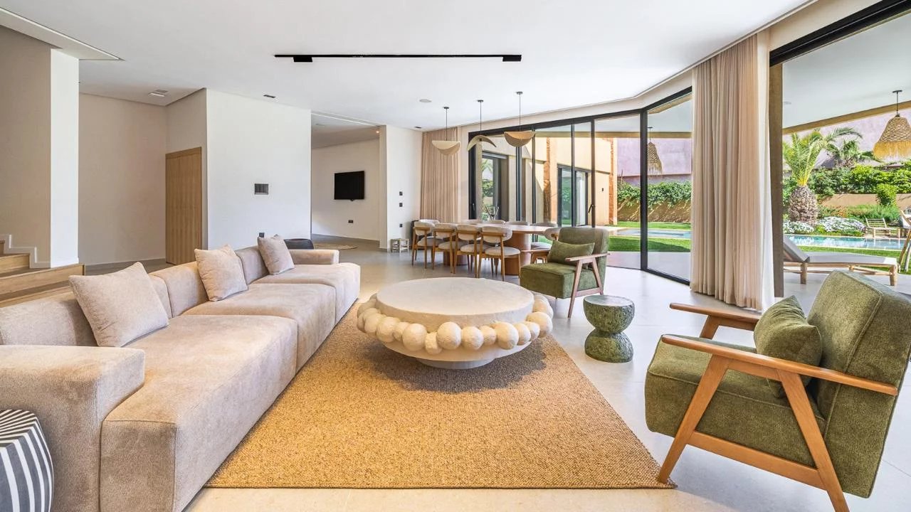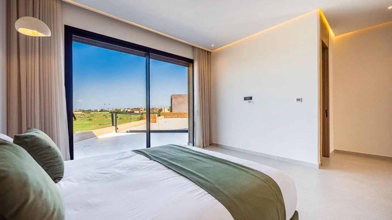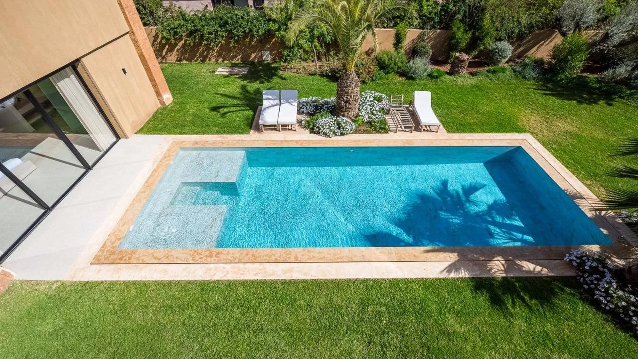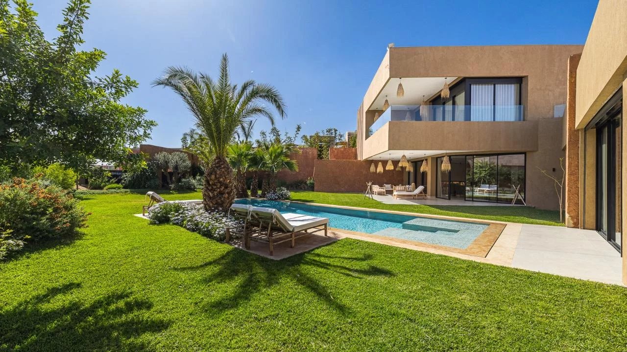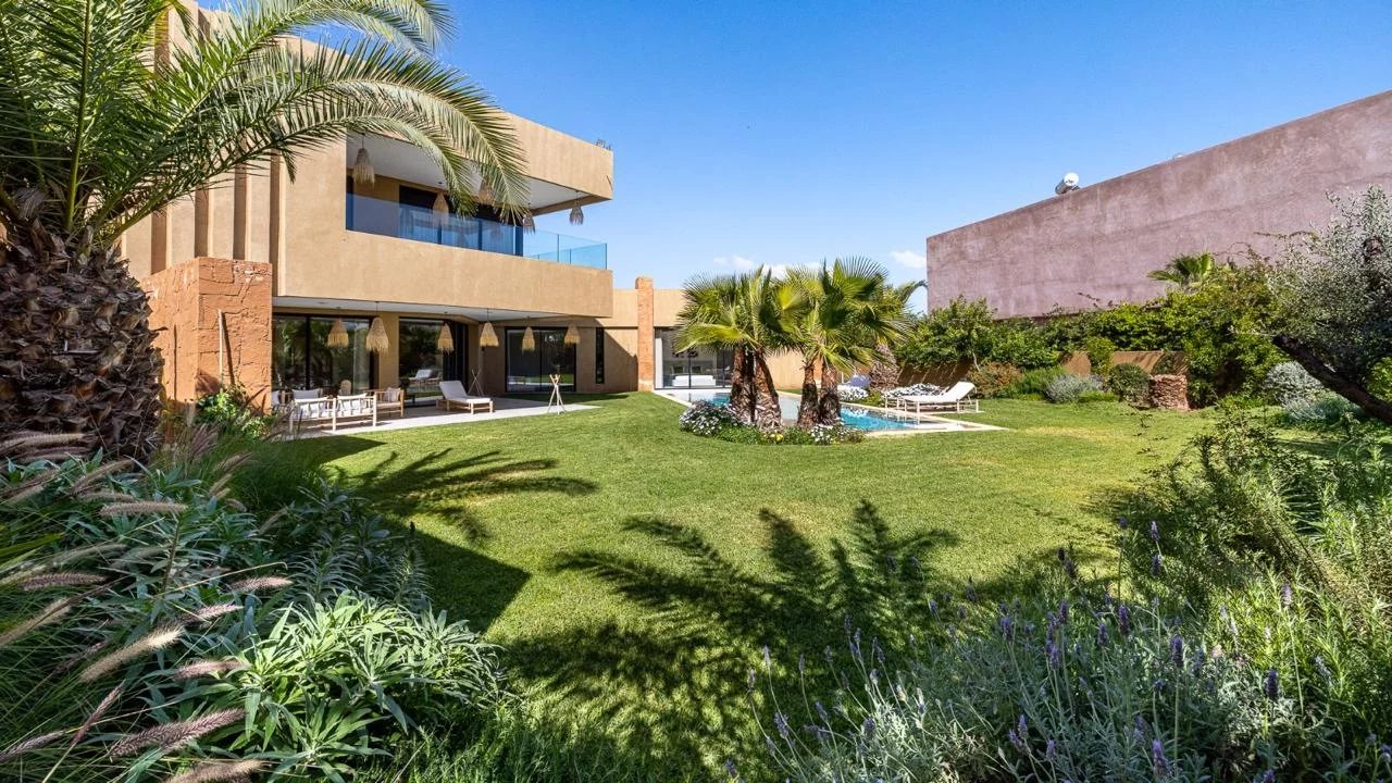 Maison neuve à vendre sur le golf d’Amelkis À l’écart de l’agitation du centre, à seulement quinze minutes de Marrakech, cette propriété neuve déploie ses lignes contemporaines au cœur du très prisé golf d’Amelkis. Une adresse confidentielle, où le calme n’a d’égal que la lumière, omniprésente. Signée Barnes Marrakech, spécialiste de l’immobilier de luxe , cette villa séduit d’emblée par ses volumes généreux et son harmonie architecturale. Édifiée sur un terrain de 1 500 m², elle offre près de 700 m² habitables, pensés pour conjuguer élégance et confort de vie. Les espaces de réception, largement ouverts sur l’extérieur, invitent à une douce continuité entre intérieur et jardin. Côté nuit, la maison propose cinq suites raffinées, chacune conçue comme un écrin intime, ainsi qu’une chambre dédiée au personnel. Vous recherchez une maison sur golf à Marrakech ? Si ce bien répond à vos attentes, nous serons ravis de vous accompagner et de vous en dévoiler tous les détails.