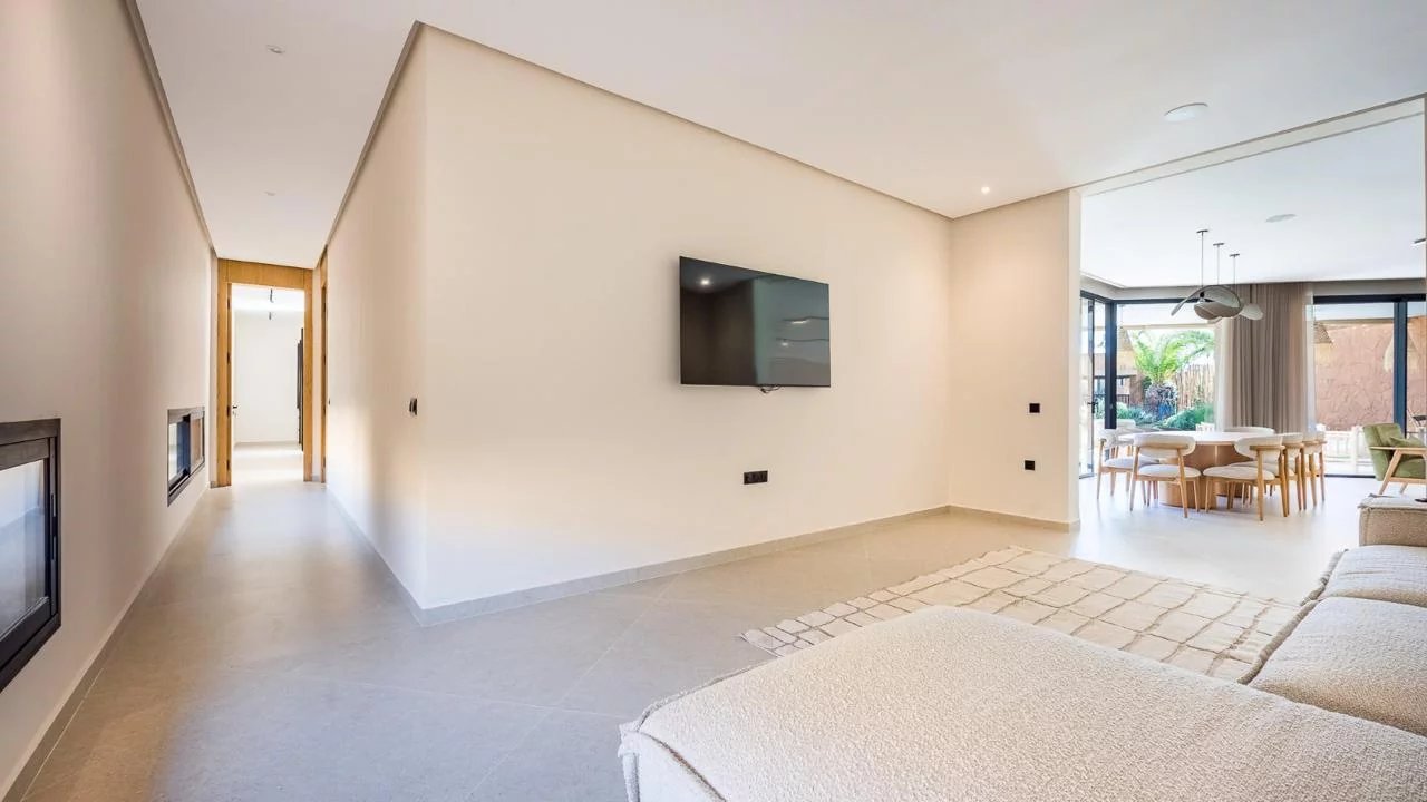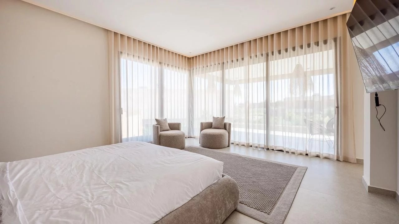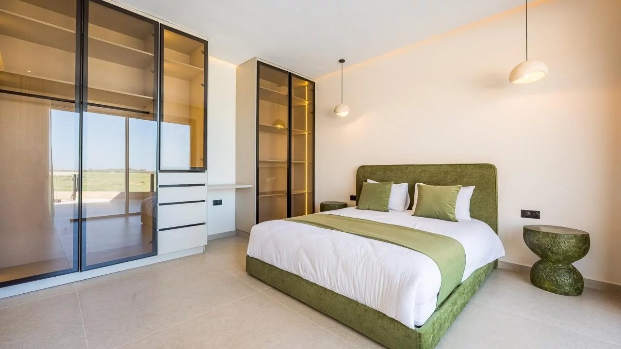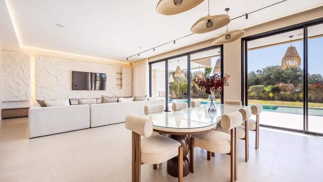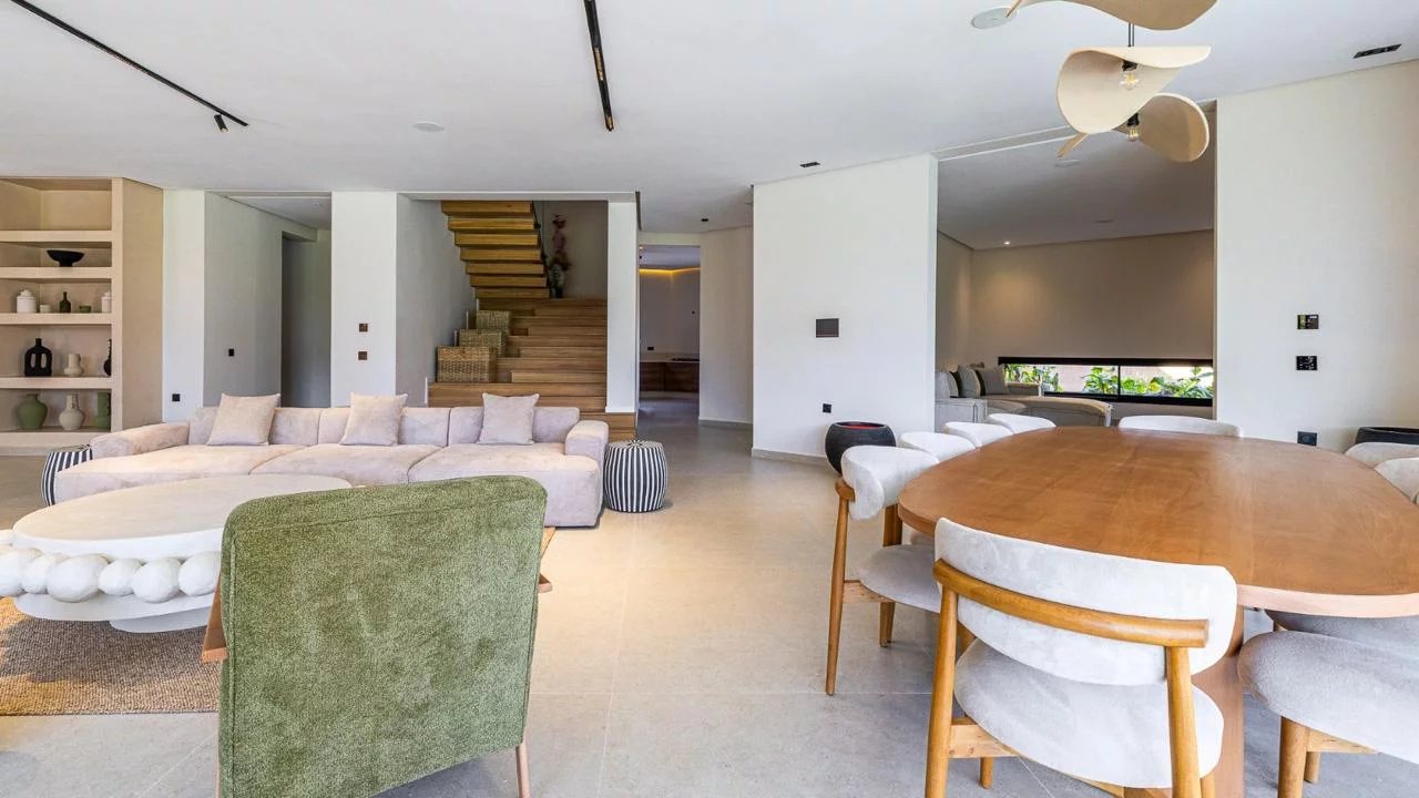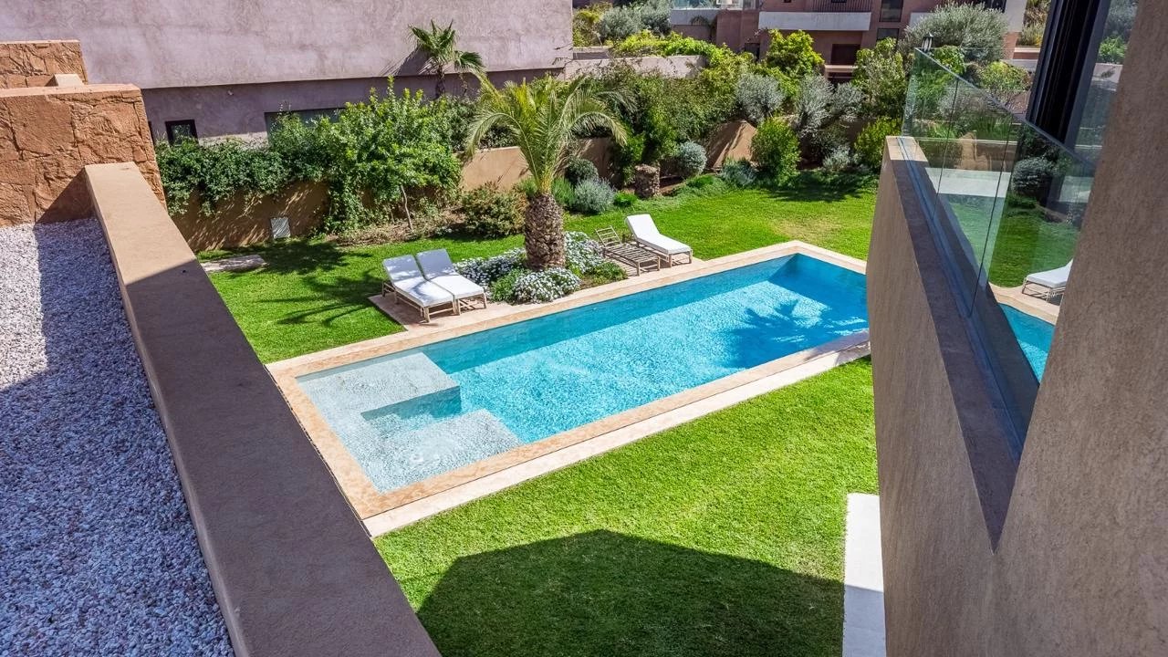 Maison neuve à vendre sur le golf d’Amelkis À l’écart de l’agitation du centre, à seulement quinze minutes de Marrakech, cette propriété neuve déploie ses lignes contemporaines au cœur du très prisé golf d’Amelkis. Une adresse confidentielle, où le calme n’a d’égal que la lumière, omniprésente. Signée Barnes Marrakech, spécialiste de l’immobilier de luxe , cette villa séduit d’emblée par ses volumes généreux et son harmonie architecturale. Édifiée sur un terrain de 1 500 m², elle offre près de 700 m² habitables, pensés pour conjuguer élégance et confort de vie. Les espaces de réception, largement ouverts sur l’extérieur, invitent à une douce continuité entre intérieur et jardin. Côté nuit, la maison propose cinq suites raffinées, chacune conçue comme un écrin intime, ainsi qu’une chambre dédiée au personnel. Vous recherchez une maison sur golf à Marrakech ? Si ce bien répond à vos attentes, nous serons ravis de vous accompagner et de vous en dévoiler tous les détails.
