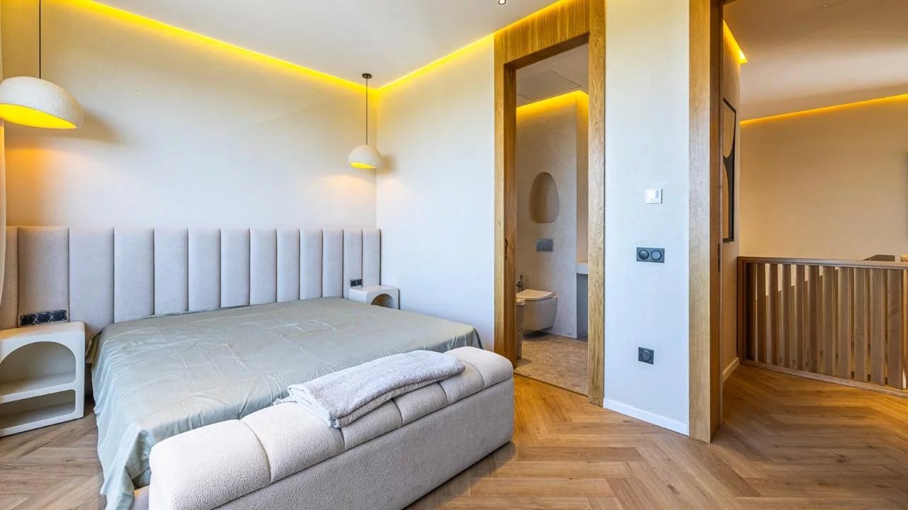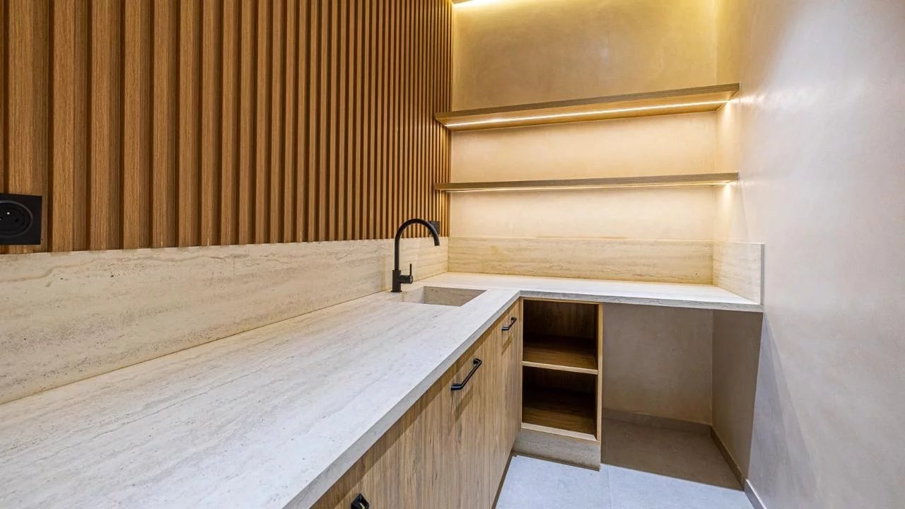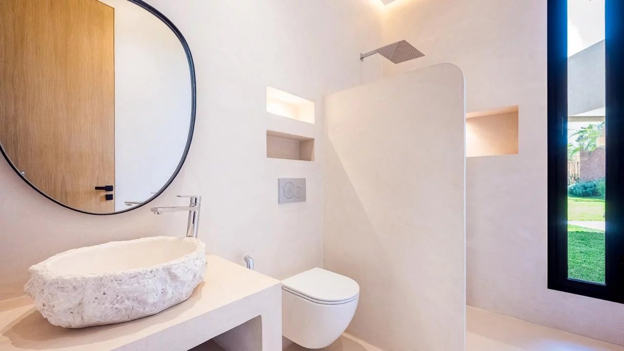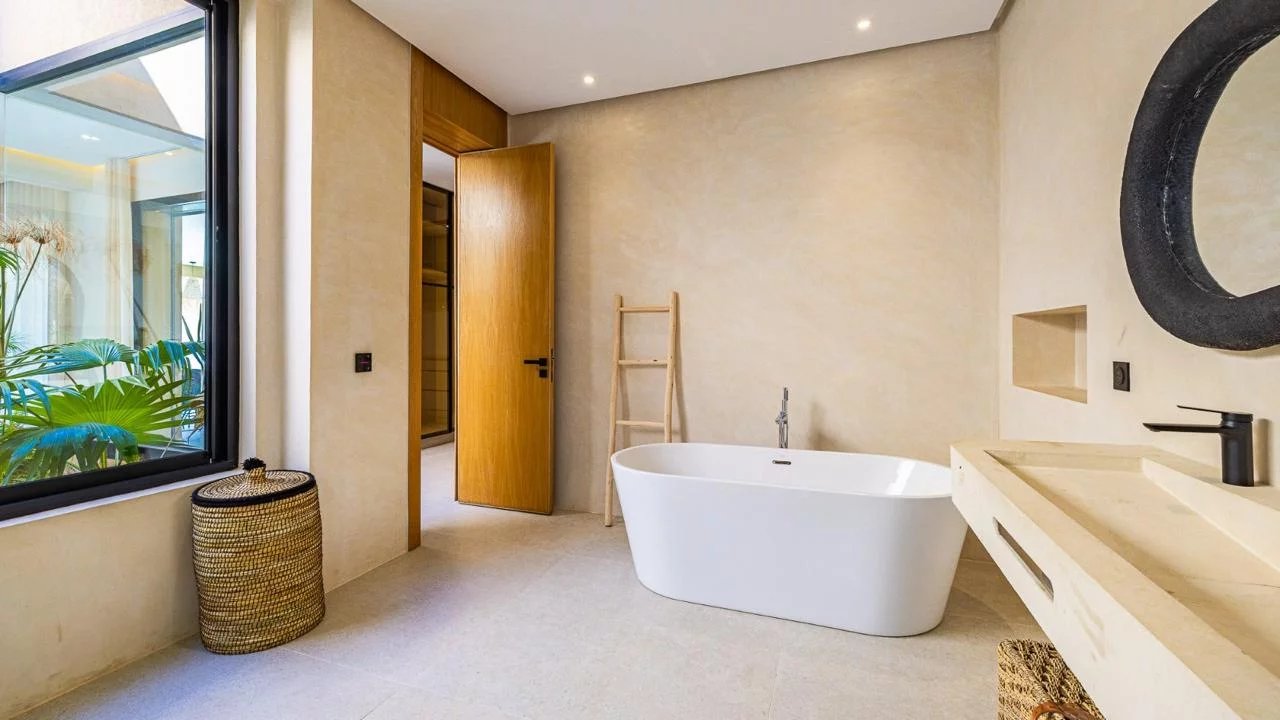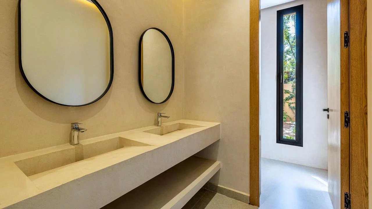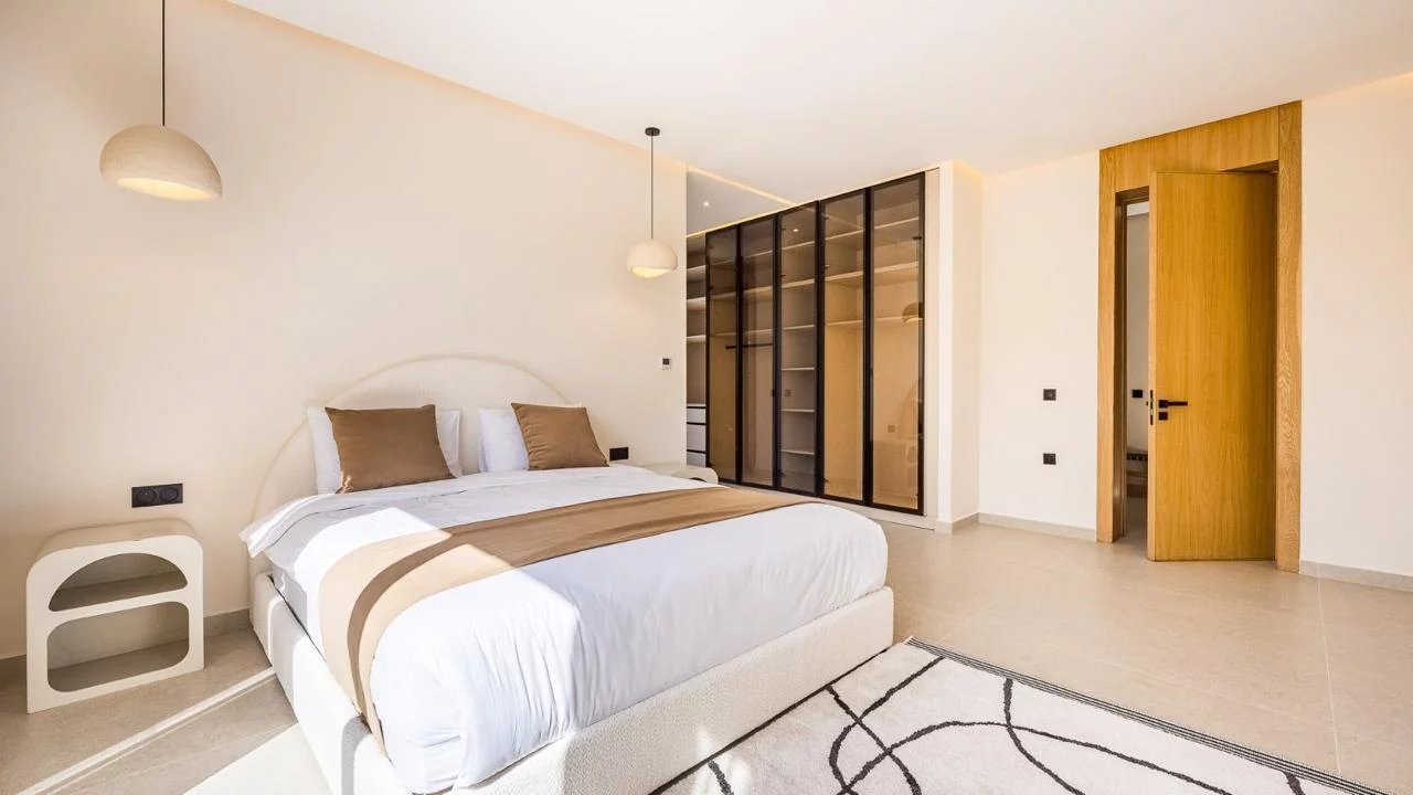 Maison neuve à vendre sur le golf d’Amelkis À l’écart de l’agitation du centre, à seulement quinze minutes de Marrakech, cette propriété neuve déploie ses lignes contemporaines au cœur du très prisé golf d’Amelkis. Une adresse confidentielle, où le calme n’a d’égal que la lumière, omniprésente. Signée Barnes Marrakech, spécialiste de l’immobilier de luxe , cette villa séduit d’emblée par ses volumes généreux et son harmonie architecturale. Édifiée sur un terrain de 1 500 m², elle offre près de 700 m² habitables, pensés pour conjuguer élégance et confort de vie. Les espaces de réception, largement ouverts sur l’extérieur, invitent à une douce continuité entre intérieur et jardin. Côté nuit, la maison propose cinq suites raffinées, chacune conçue comme un écrin intime, ainsi qu’une chambre dédiée au personnel. Vous recherchez une maison sur golf à Marrakech ? Si ce bien répond à vos attentes, nous serons ravis de vous accompagner et de vous en dévoiler tous les détails.