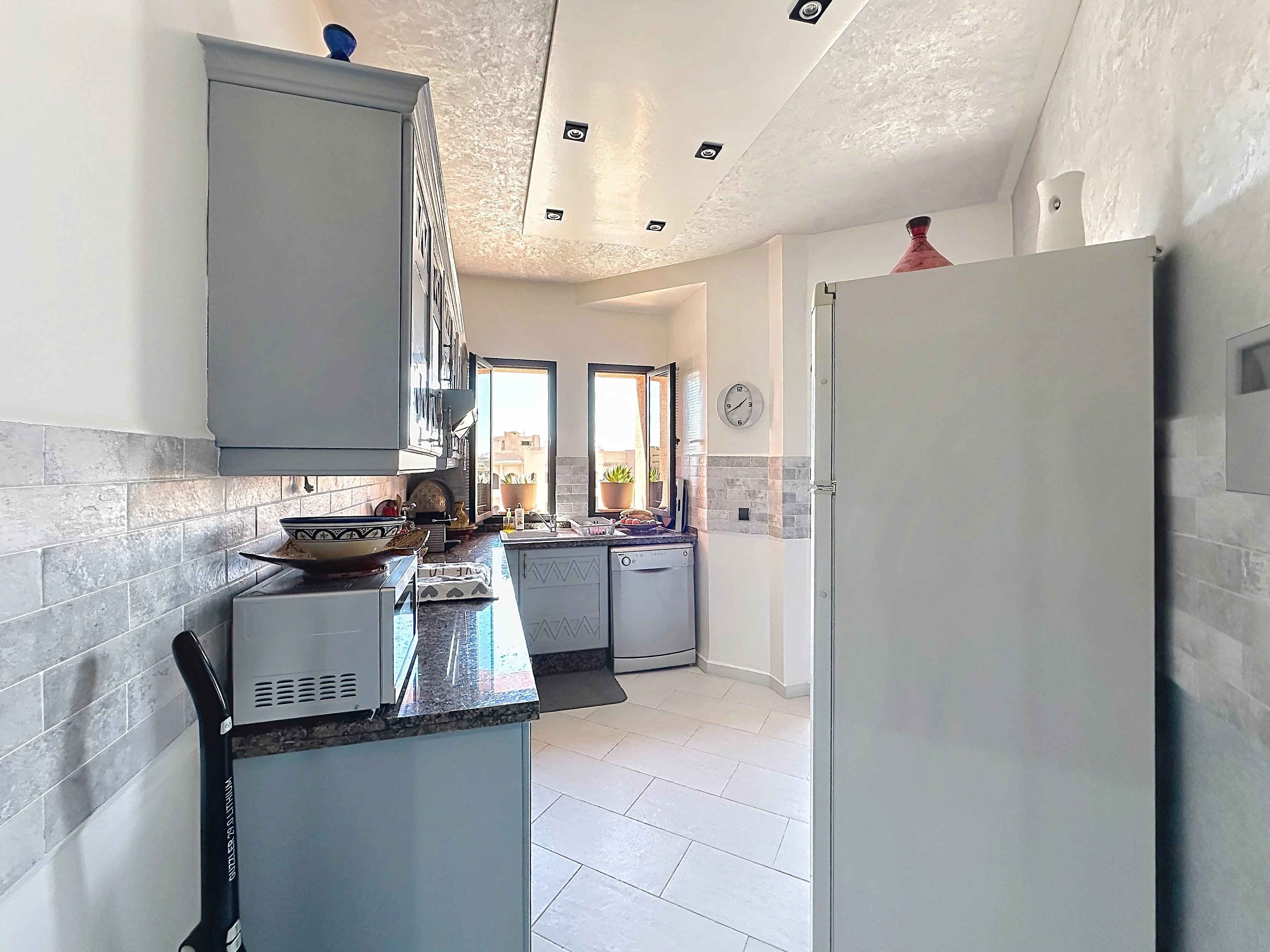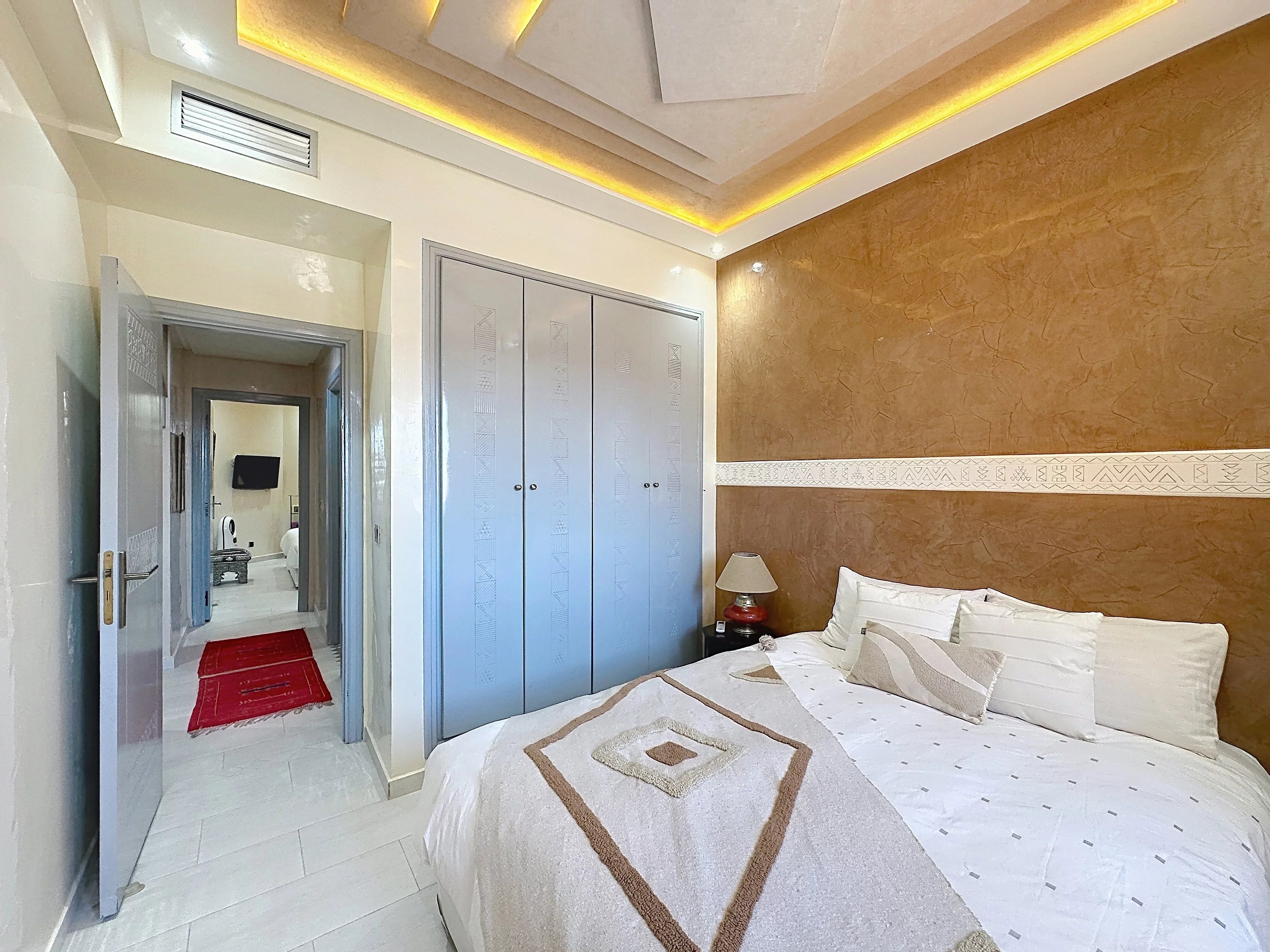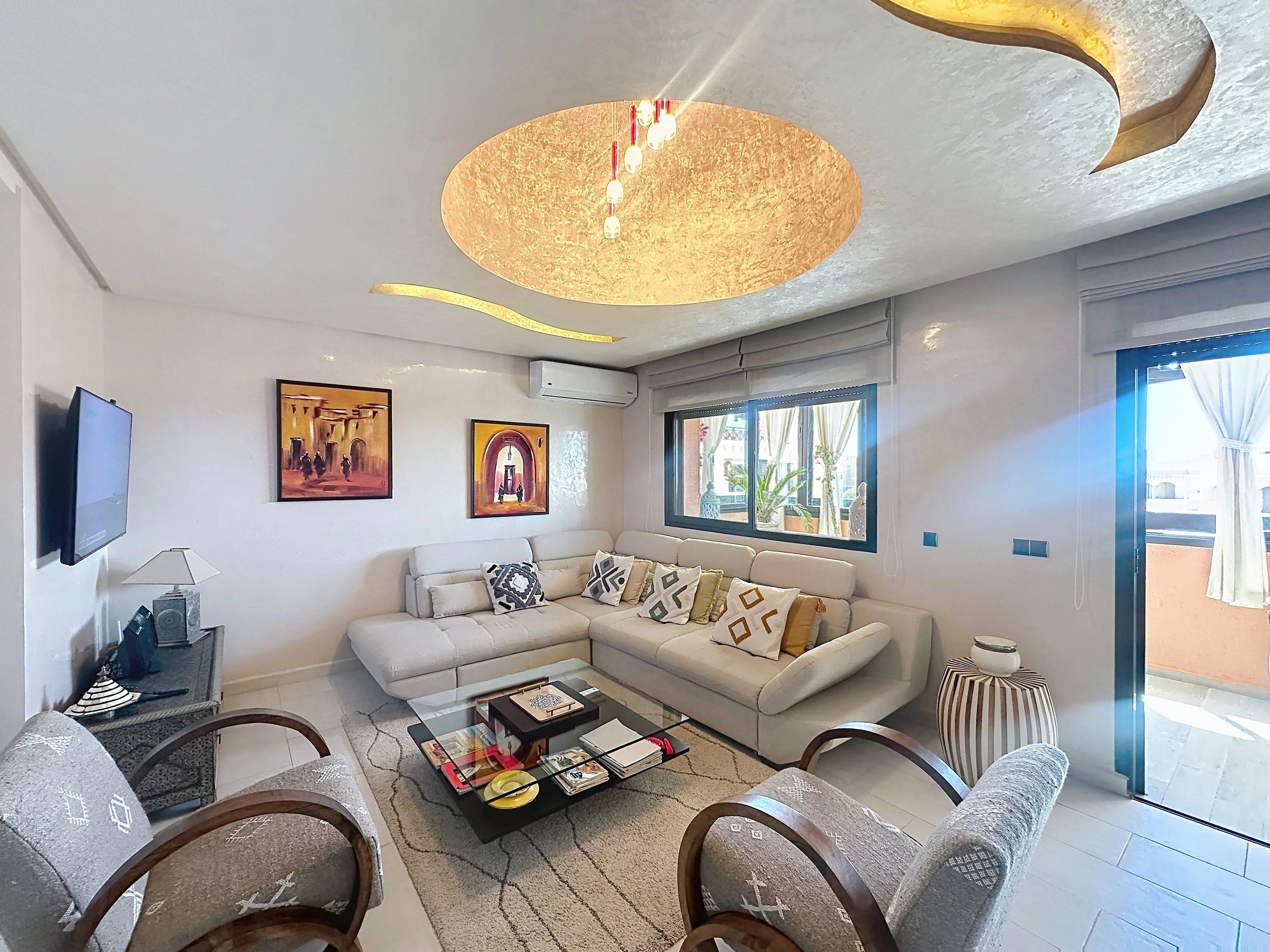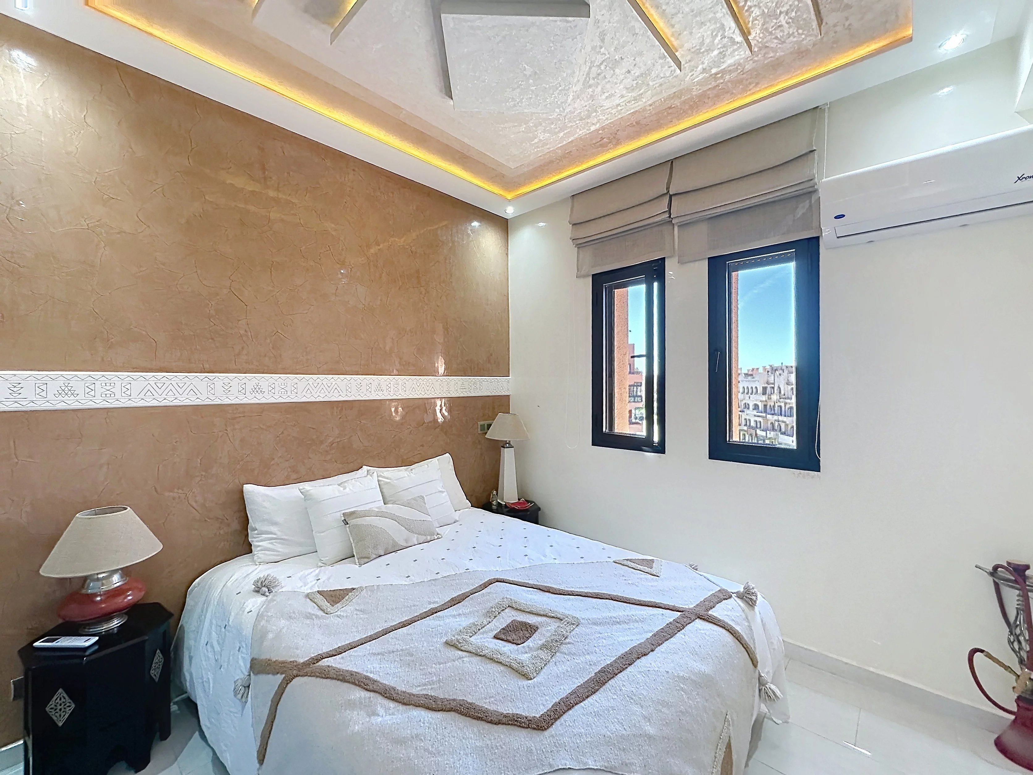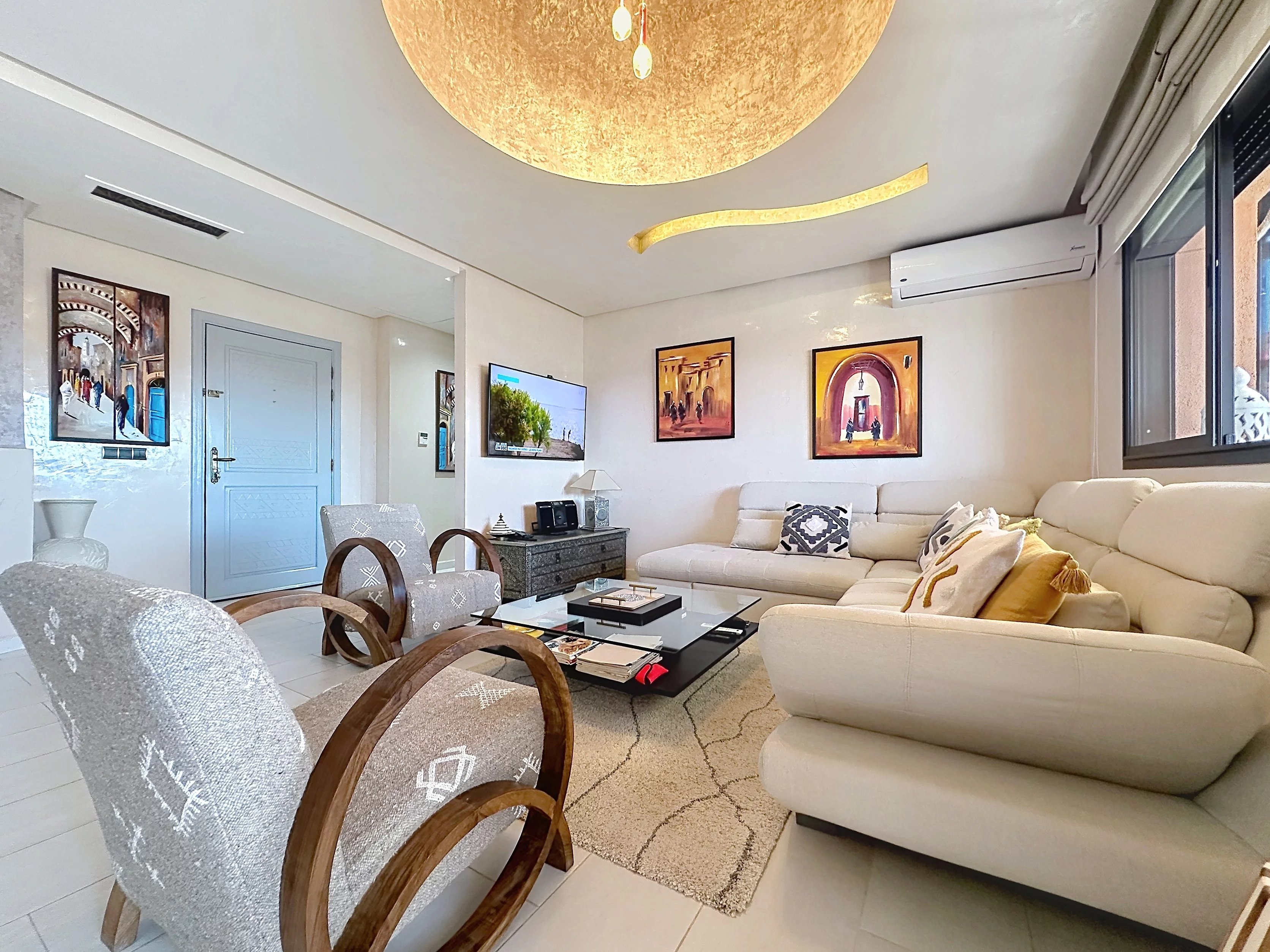 Situé sur la très dynamique Route de Casablanca à Marrakech, cet appartement de 86 m² offre un cadre de vie pratique et confortable, idéal pour une résidence principale comme pour un investissement locatif. Au 4ᵉ et dernier étage d’une résidence sécurisée avec gardiennage 24h/24 et 7j/7, ce bien se compose de deux chambres, d’un séjour lumineux et d’une cuisine entièrement équipée. L’appartement est vendu meublé, prêt à être habité ou loué immédiatement. Il dispose également d’une climatisation réversible, assurant un confort optimal en toute saison. Une place de parking titrée en sous-sol vient compléter ce bien, un véritable avantage dans ce secteur recherché