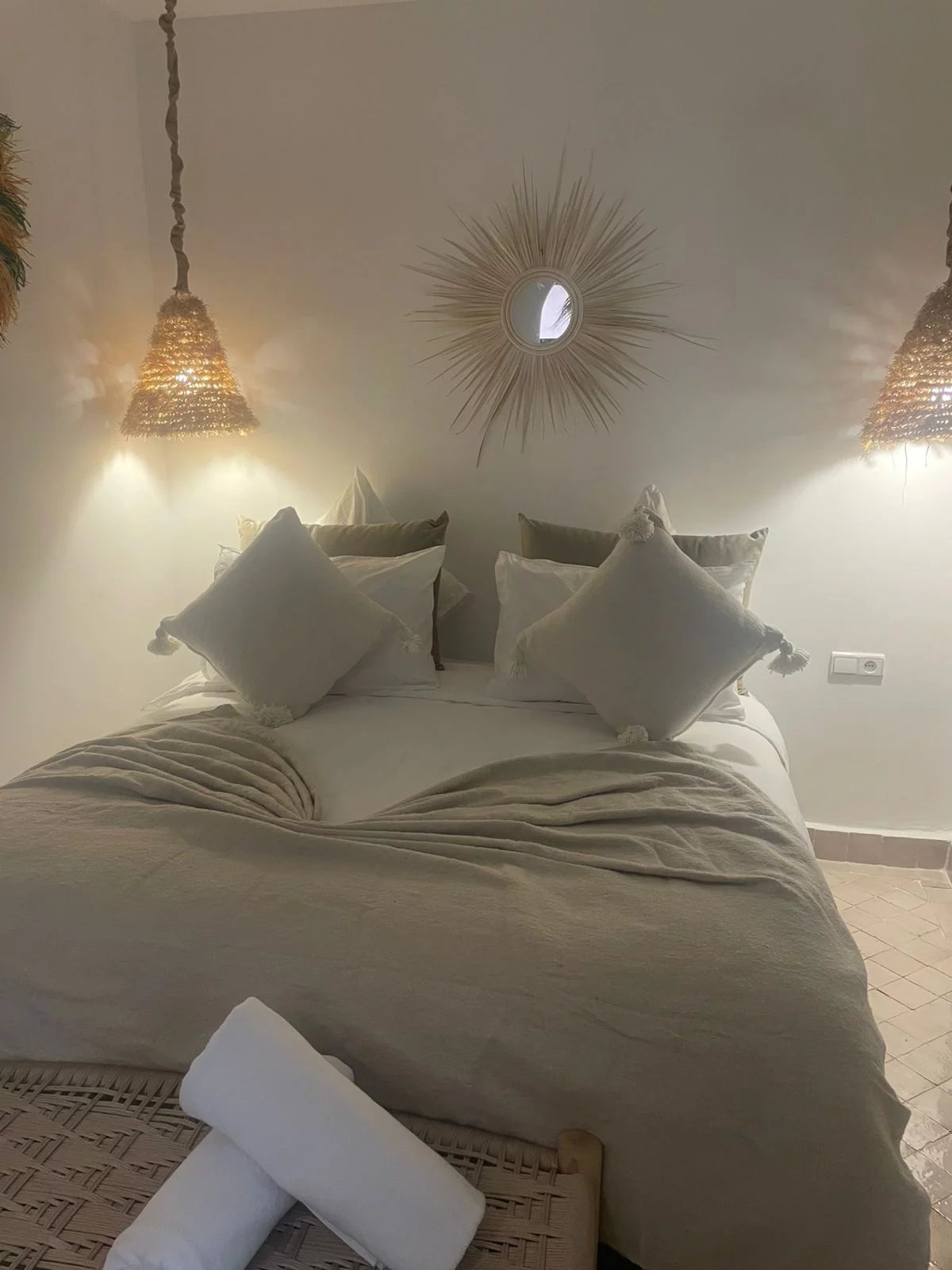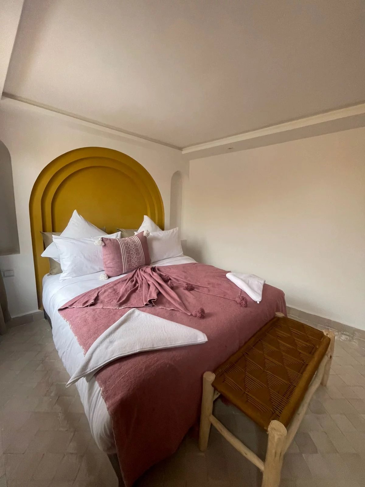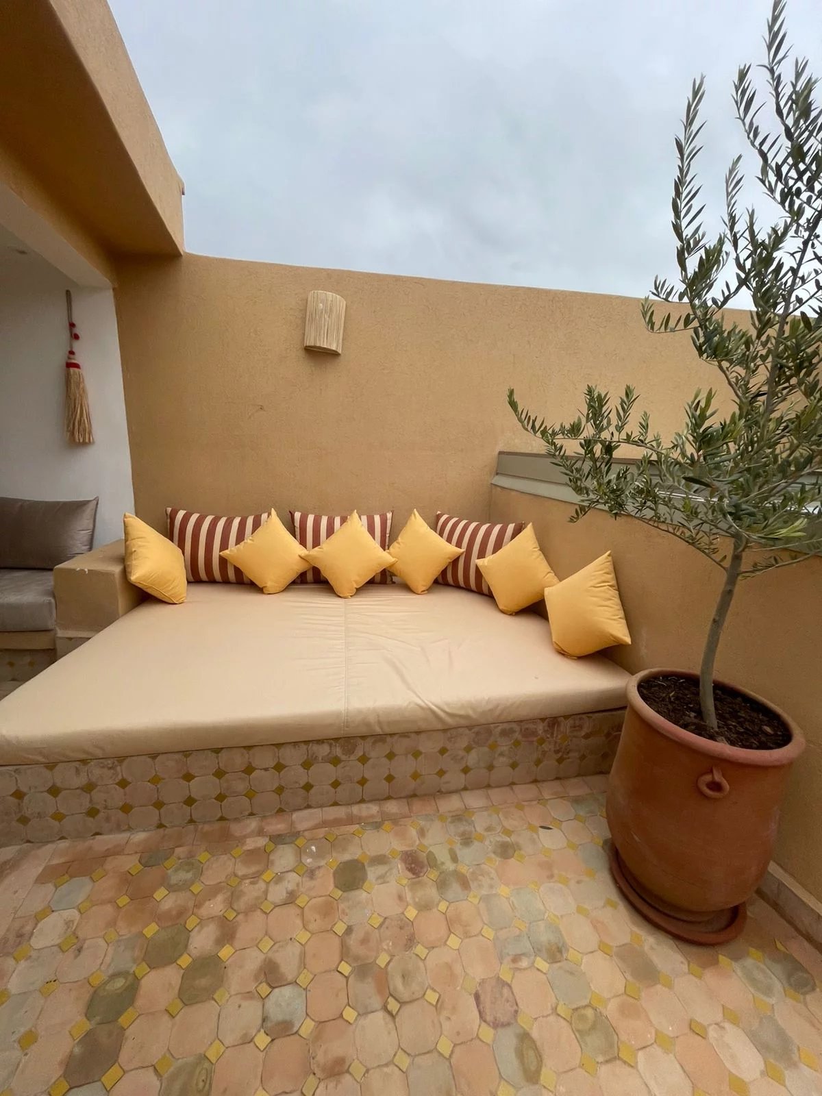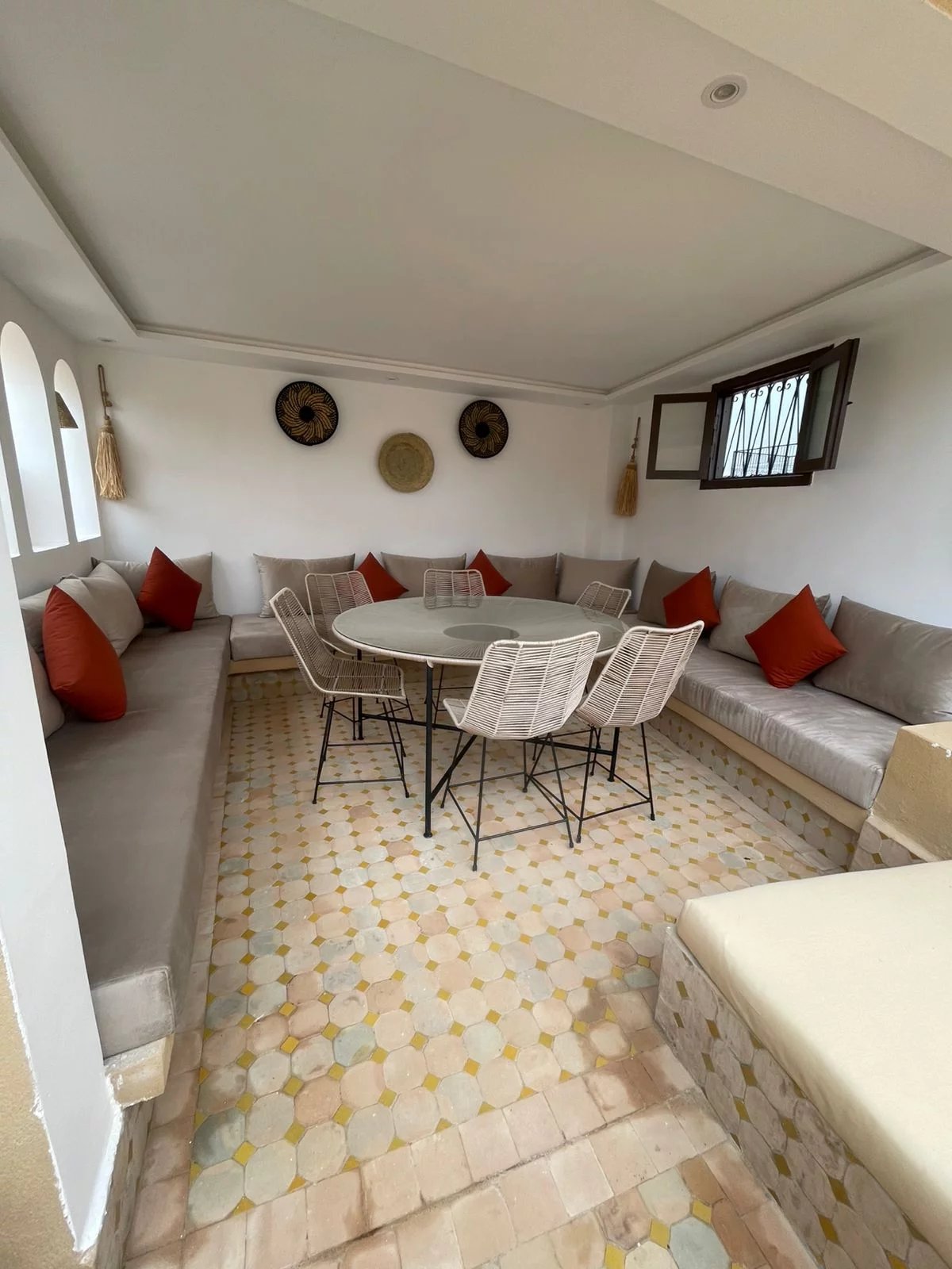 Situé dans le très prisé quartier de la Kasbah à Marrakech, ce riad entièrement rénové allie authenticité marocaine et confort moderne. Édifié sur une surface au sol de 80 m², ce bien rare constitue une excellente opportunité d’investissement ou de résidence secondaire. Le riad se compose de 4 chambres, chacune disposant de sa propre salle de bain privative et de la climatisation, garantissant un confort optimal pour les occupants. Un agréable patio central dessert les différents espaces de vie, comprenant salon, salle à manger, cuisine équipée ainsi qu’un espace pouvant être exploité en petite boutique. Vous apprécierez également son bassin idéal pour se rafraîchir, ainsi que sa terrasse très bien joliment aménagée offrant une vue panoramique exceptionnelle sur les jardins du Palais Royal. Idéalement situé, le riad bénéficie d’un accès voiture jusqu’à la porte, un véritable atout dans la médina. Il se trouve à seulement 10 minutes à pied de la célèbre place Jemaa el-Fna et à proximité immédiate des principaux sites historiques et attractions touristiques.