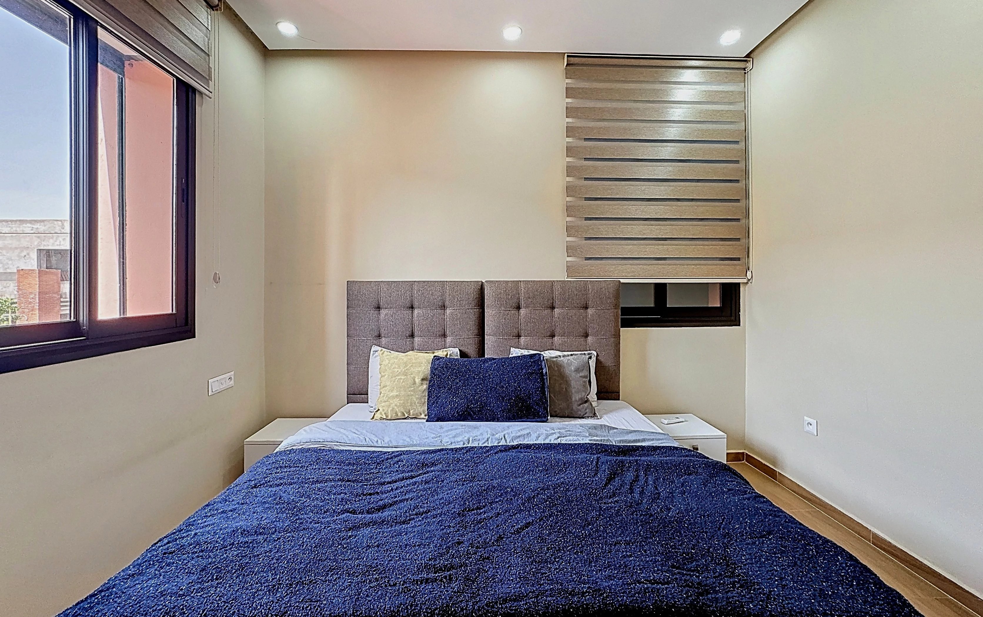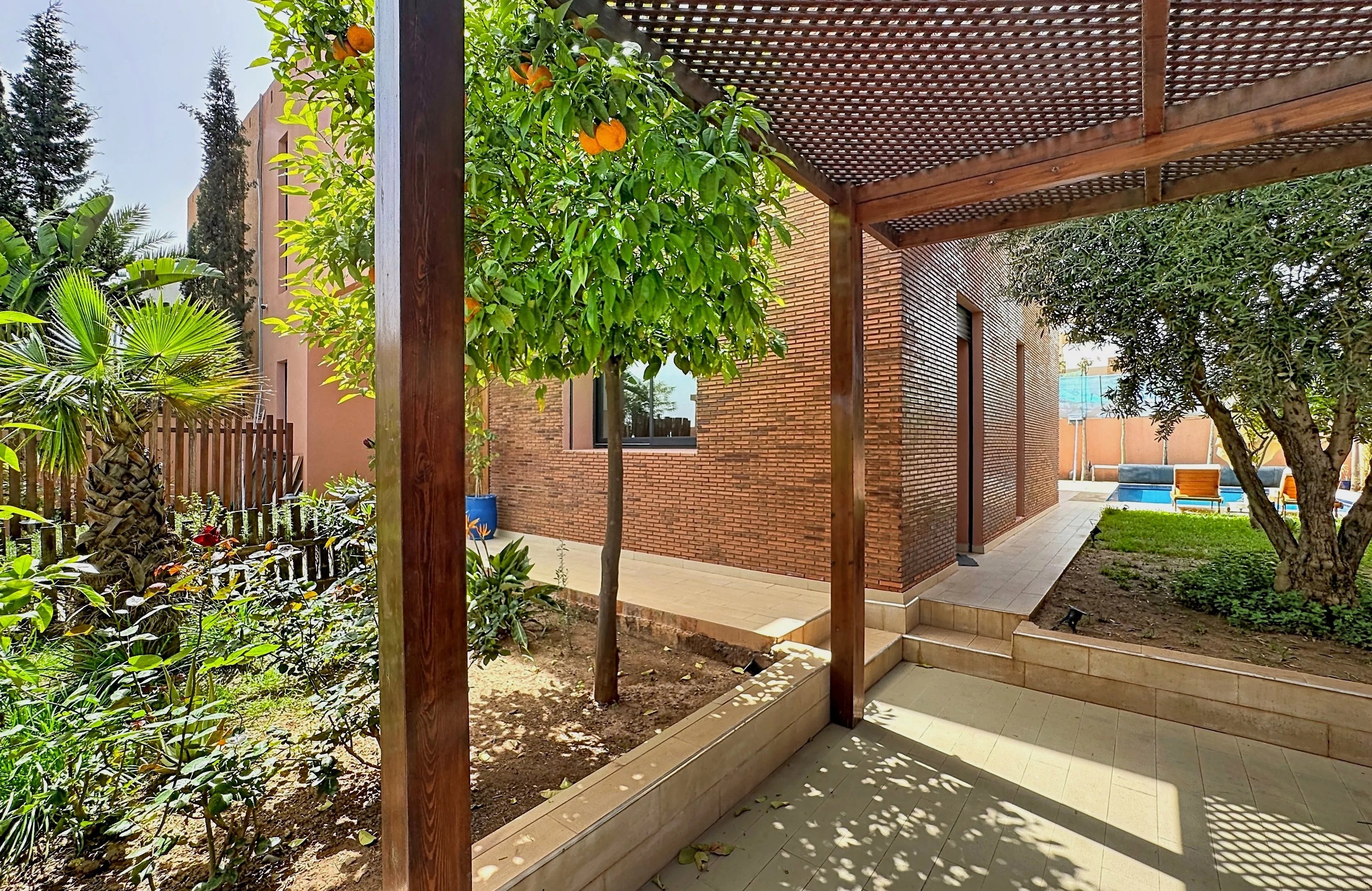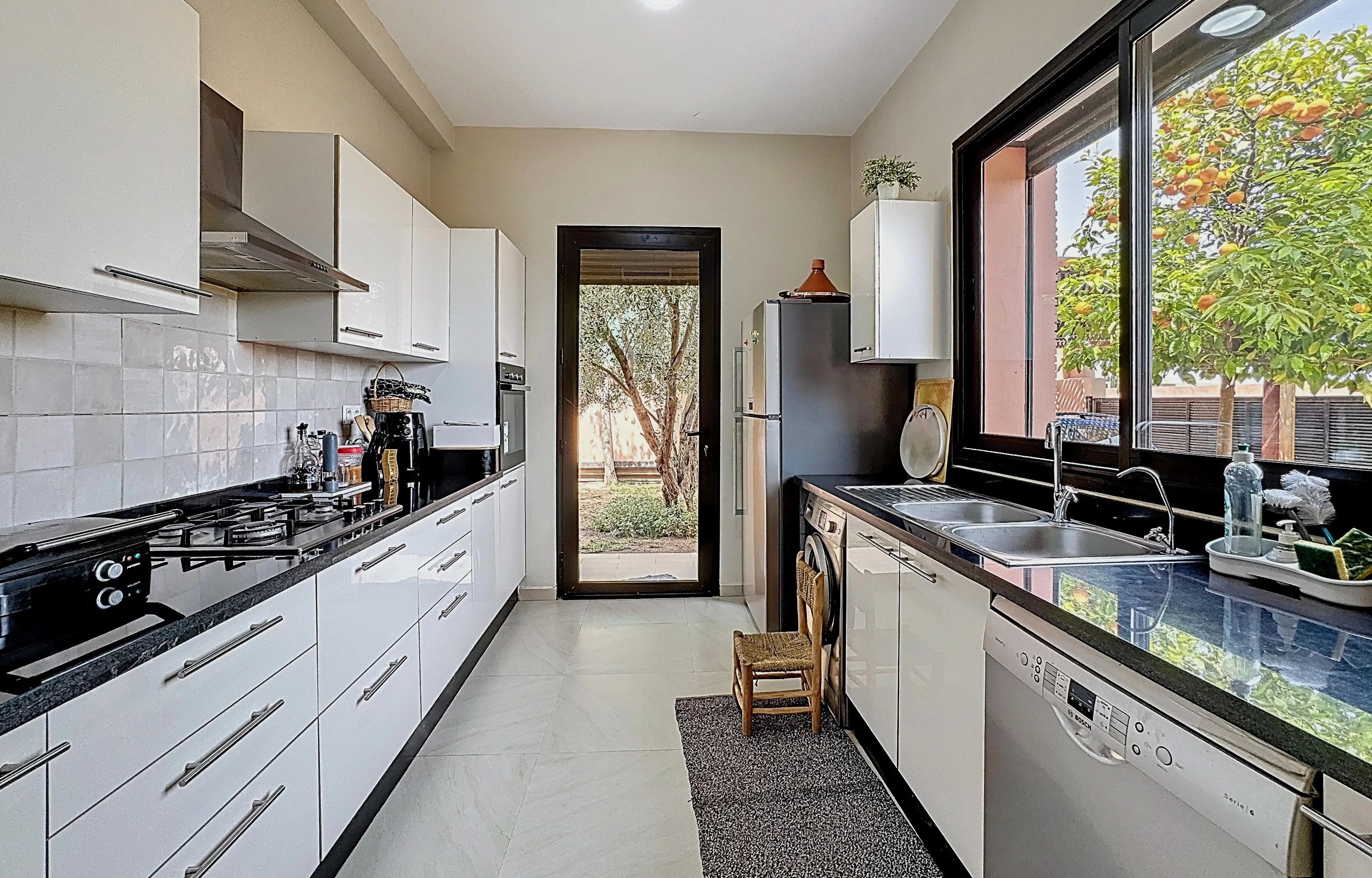 Idéalement située sur le prestigieux golf d’Akenza, à seulement 10 km du centre-ville de Marrakech, cette villa représente une opportunité rare, aussi bien pour un investissement locatif que pour une élégante résidence secondaire. Édifiée sur un terrain de 400 m², la propriété développe environ 300 m² habitables répartis sur deux niveaux, offrant des volumes généreux et une distribution harmonieuse. Le rez-de-chaussée accueille plusieurs espaces de vie conviviaux, comprenant un salon TV, un authentique salon marocain, ainsi qu’une cuisine fonctionnelle. L’ensemble s’ouvre sur une vaste terrasse ombragée, idéale pour profiter pleinement du climat en toute saison. À l’étage, l’espace nuit propose trois chambres, dont une belle suite parentale avec grand dressing et terrasse couverte privative, offrant confort et intimité. Une villa au fort potentiel, alliant emplacement recherché, charme et qualité de vie.